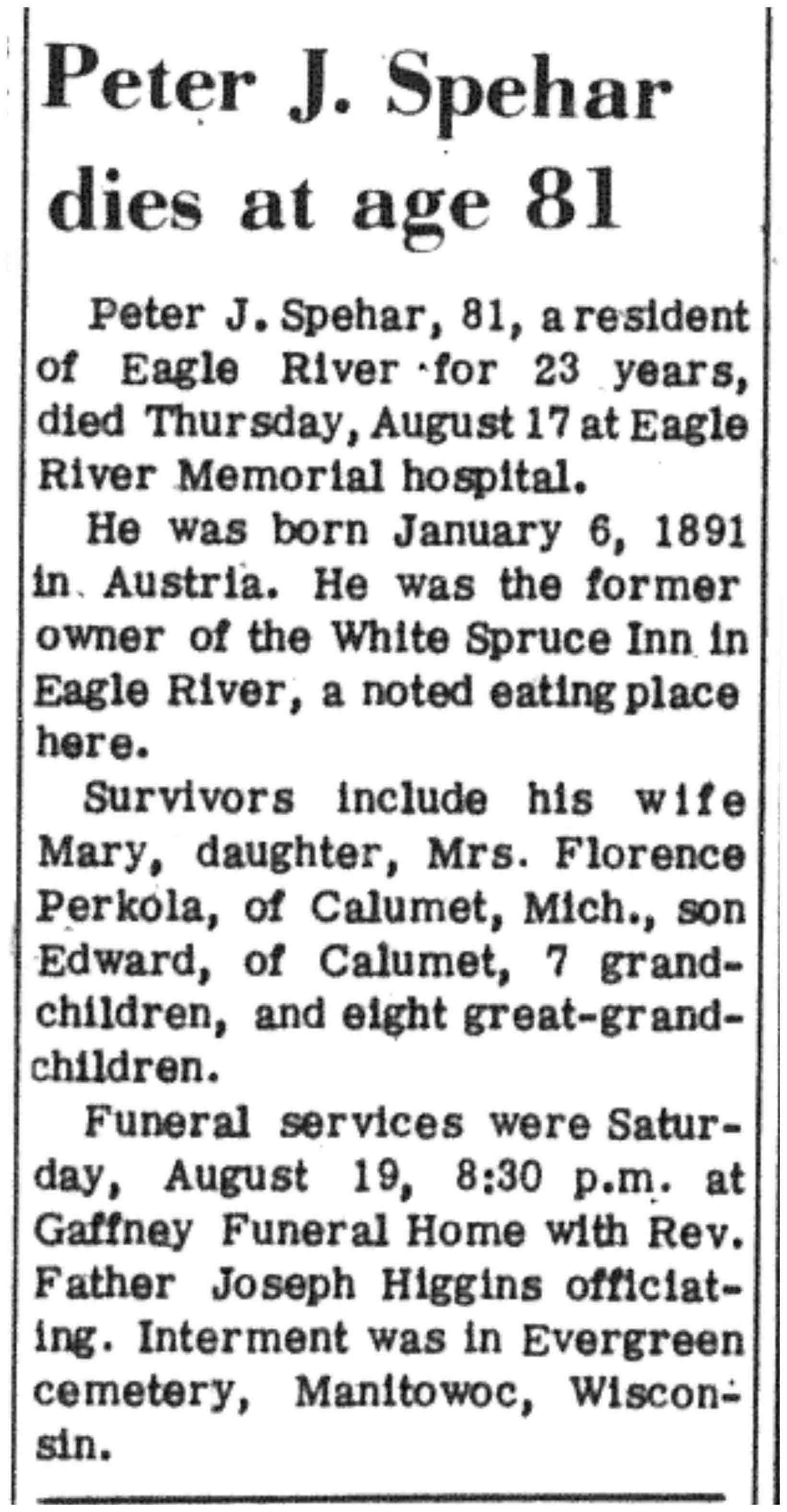 | Spehar | Peter J | 06 Jan 1891 | 17 Aug 1972 | VCN | 24 Aug 1972 | 2 |