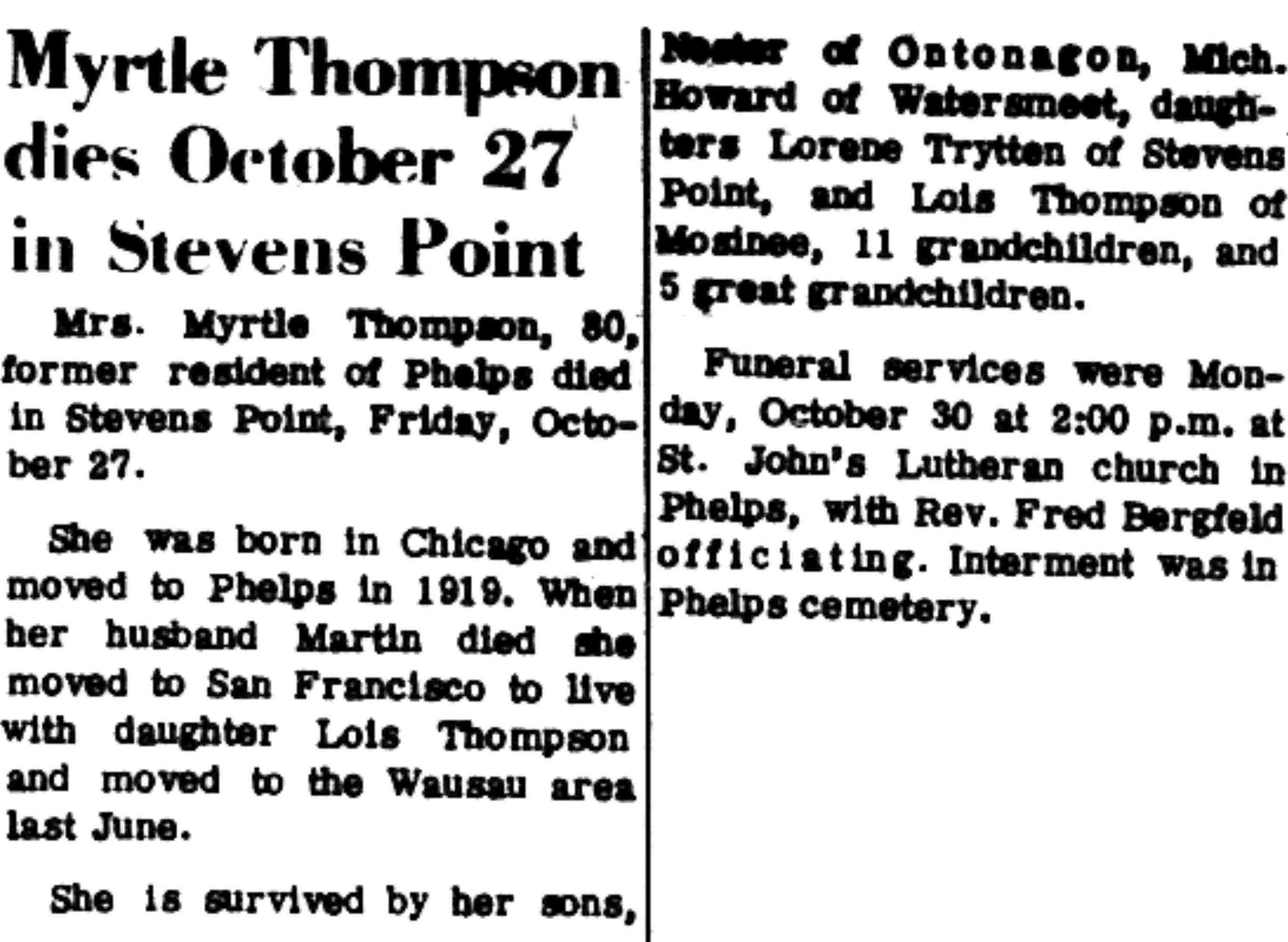 | Thompson | Myrtle | c 1892 | 27 Oct 1972 | VCN | 09 Nov 1972 | 7 |