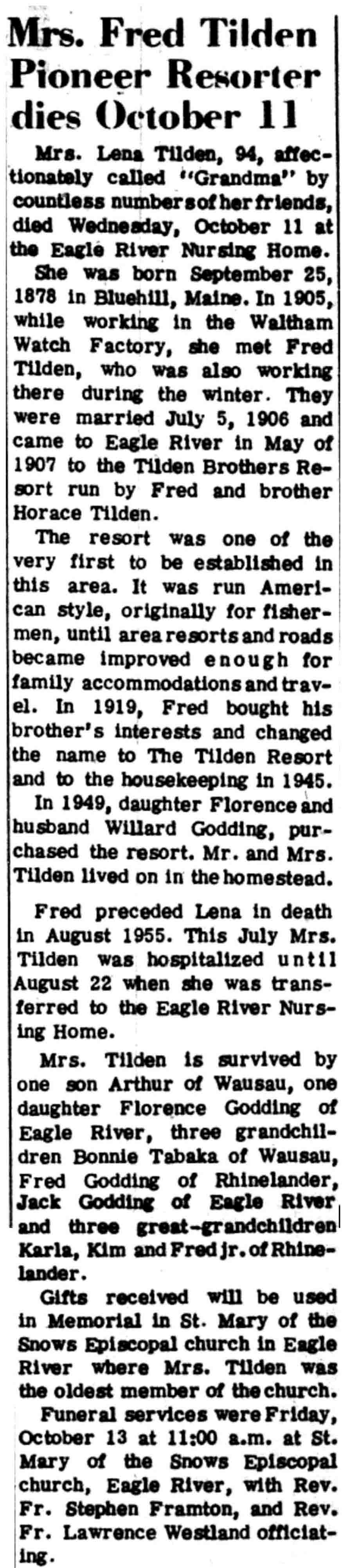 | Tilden | Lena 'Grandma' | 25 Sep 1878 | 11 Oct 1972 | VCN | 11 Oct 1972 | 6 |