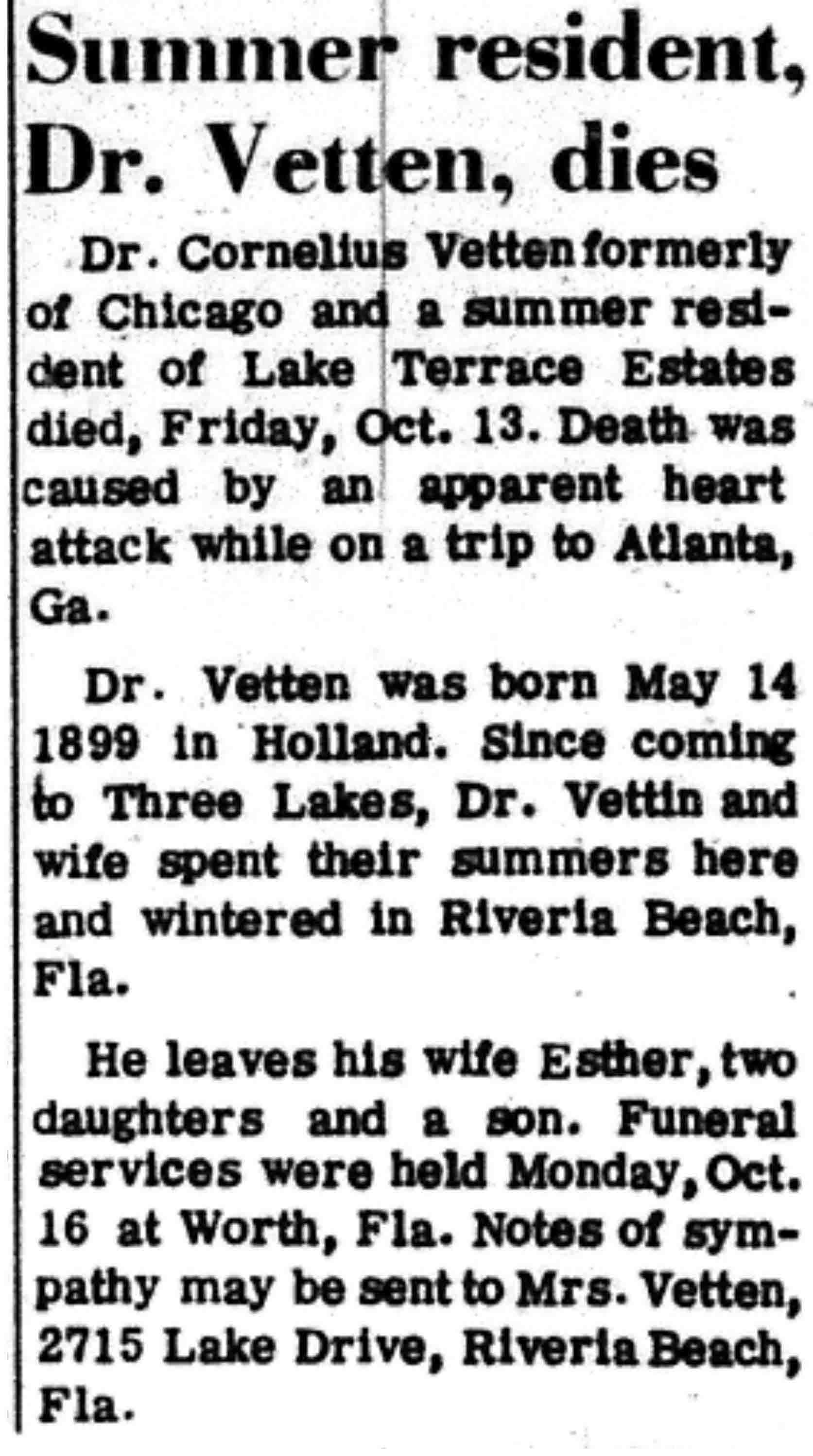 | Vetten | Cornelius, Dr | 14 May 1899 | 13 Oct 1972 | VCN | 19 Oct 1972 | 6 |