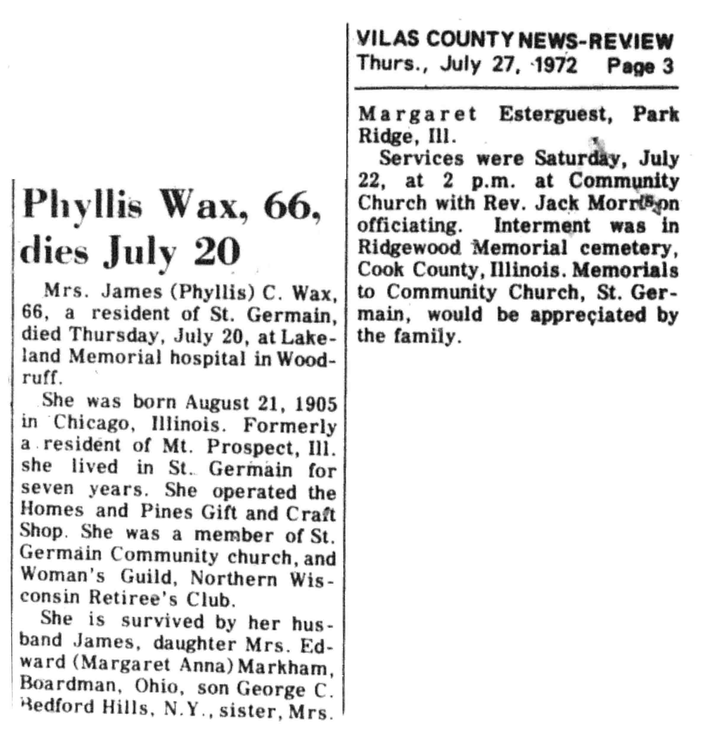 | Wax | Phyllis | 21 Aug 1905 | 20 Jul 1972 | VCN | 27 Jul 1972 | 3 |