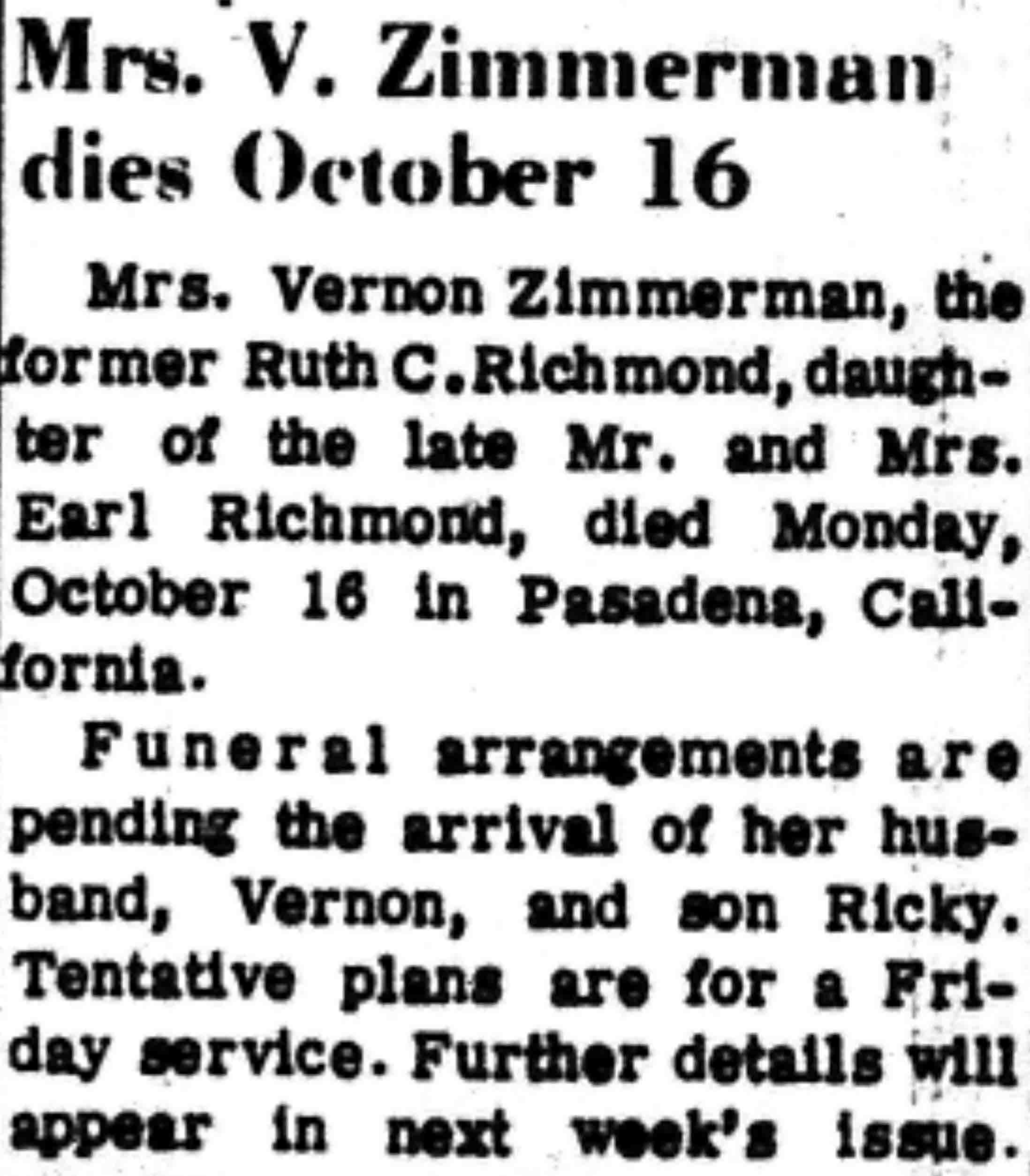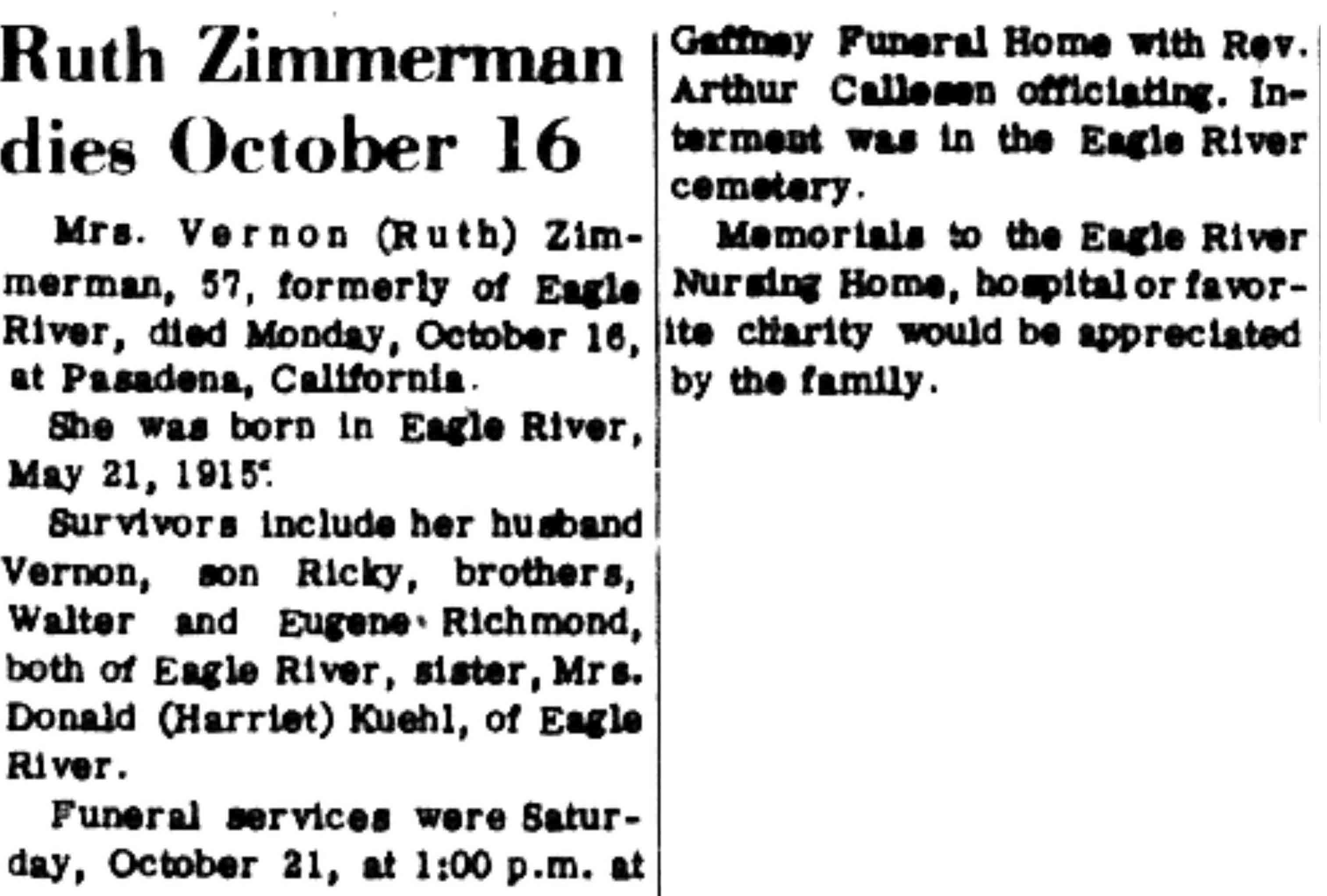 | Zimmerman | Ruth C (Richmond) #2 | 21 May 1915 | 16 Oct 1972 | VCN | 26 Oct 1972 | 6 |