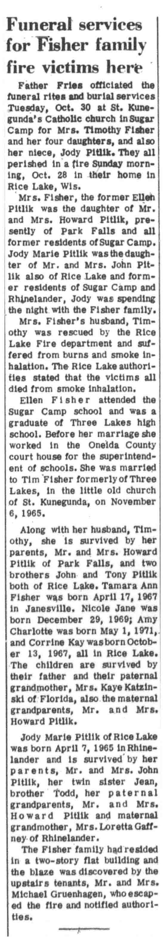 | Fisher | Ellen (Pitlik) | 28 Oct 1973 | VCN | 08 Nov 1973 | 2 | |