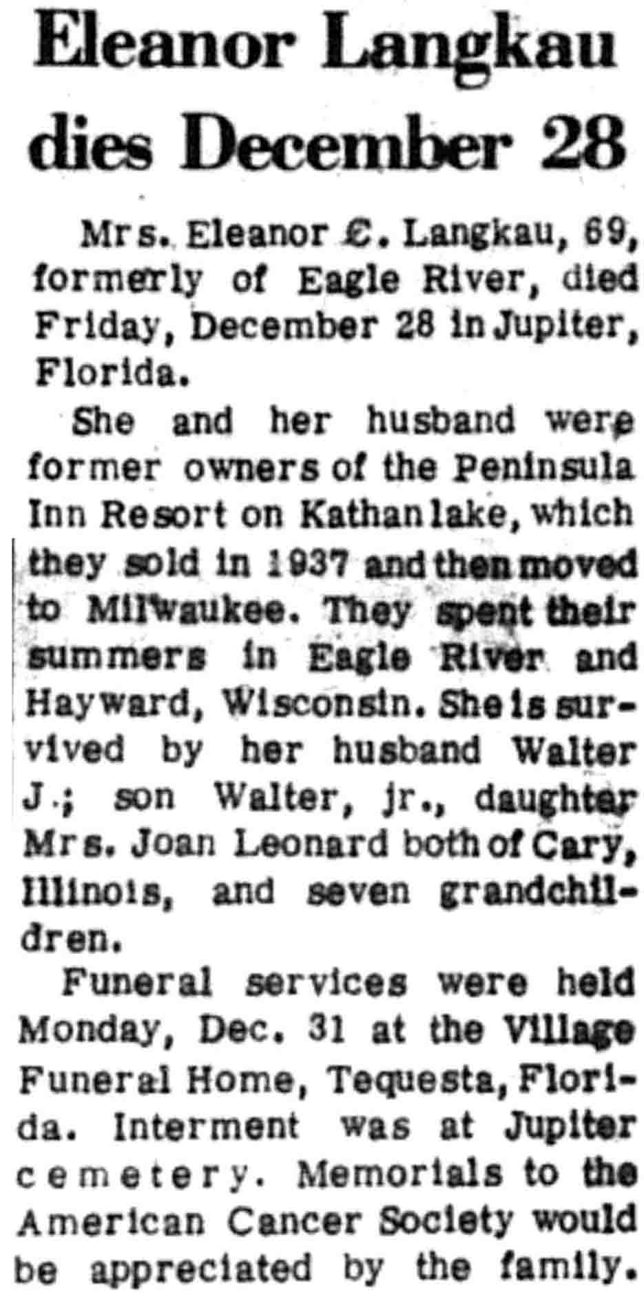 | Langkau | Eleanore C | c 1904 | 28 Dec 1973 | VCN | 10 Jan 1974 | 8 |