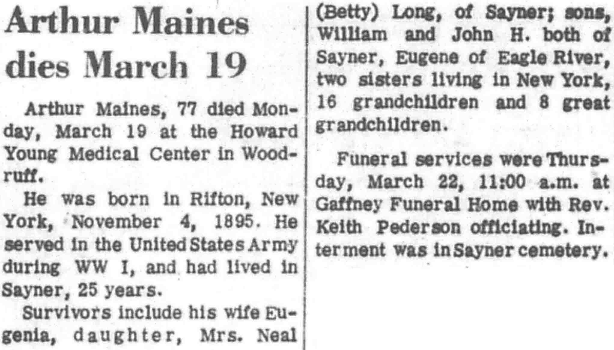 | Maines | Arthur | 04 Nov 1895 | 19 Mar 1973 | VCN | 22 Mar 1973 | 9 |