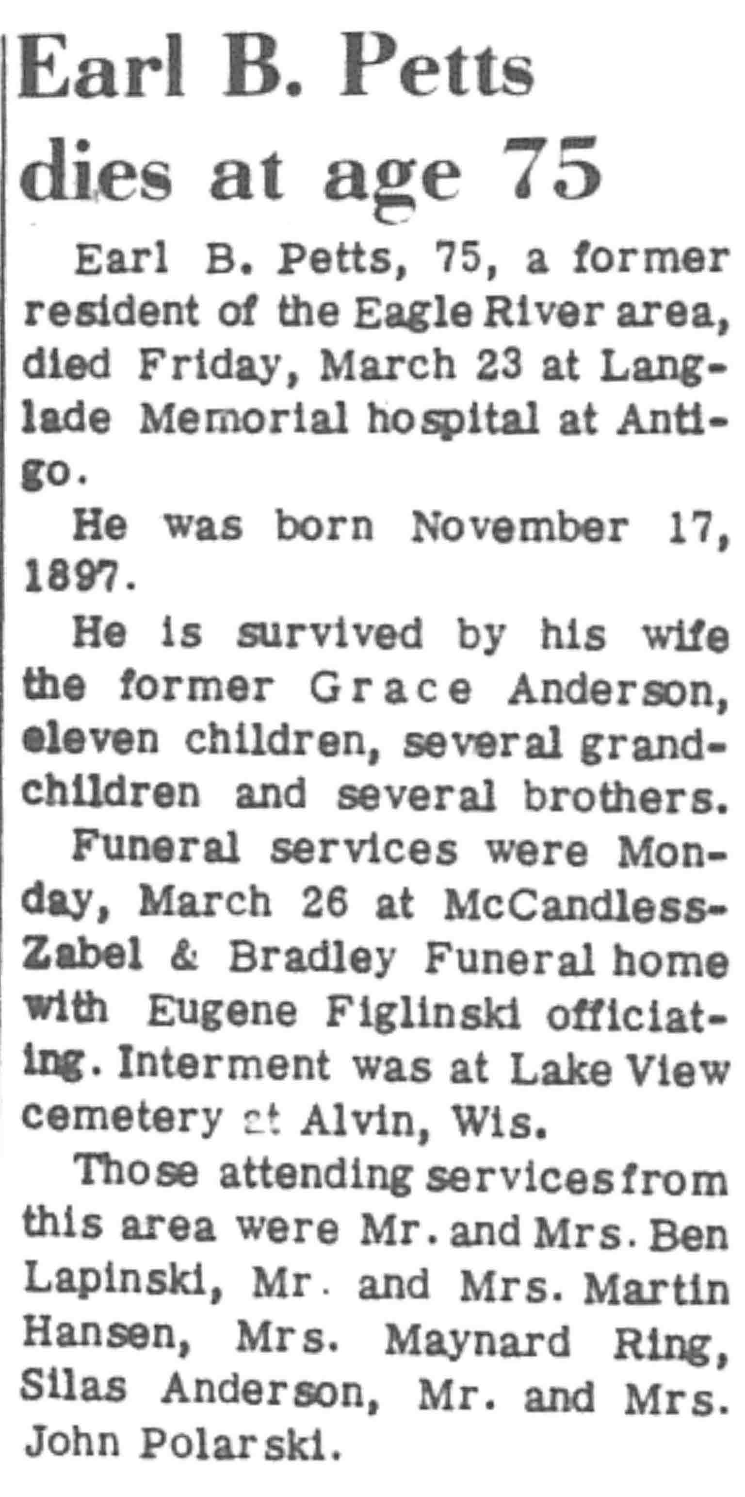 | Petts | Earl B | 17 Nov 1897 | 23 Mar 1973 | VCN | 05 Apr 1973 | 8 |