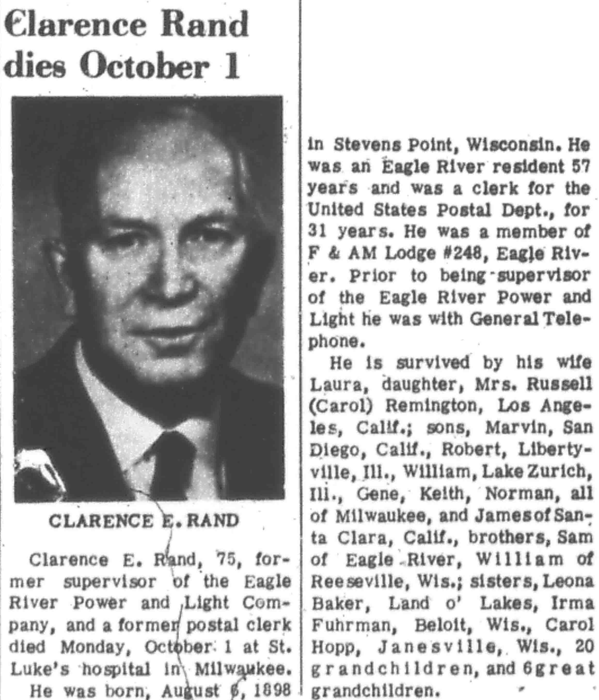 | Rand | Clarence E | 06 Aug 1898 | 01 Oct 1973 | VCN | 04 Oct 1973 | 2 |