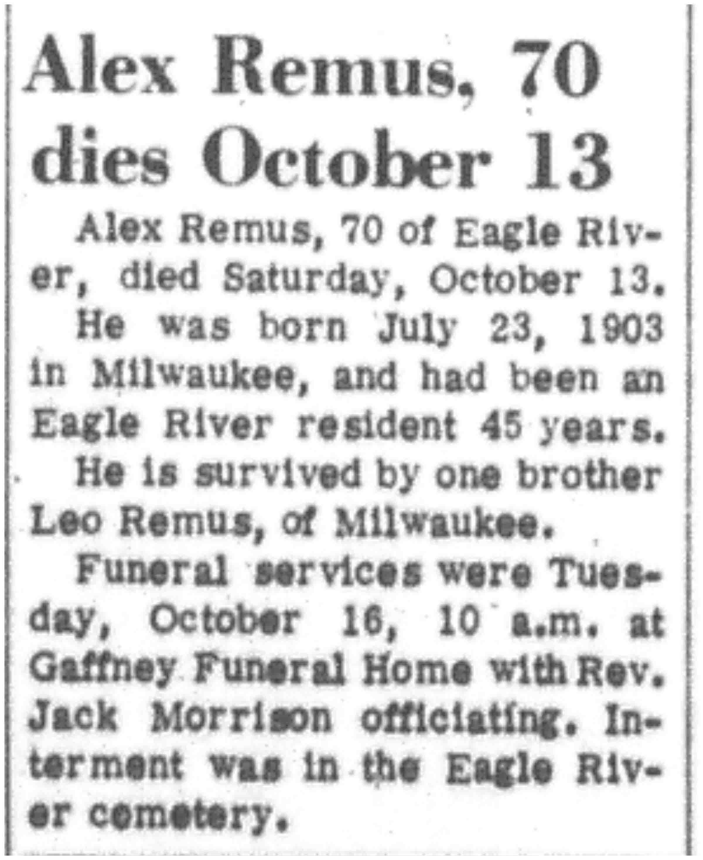 | Remus | Alex | 23 Jul 1903 | 13 Oct 1973 | VCN | 18 Oct 1973 | 3 |
