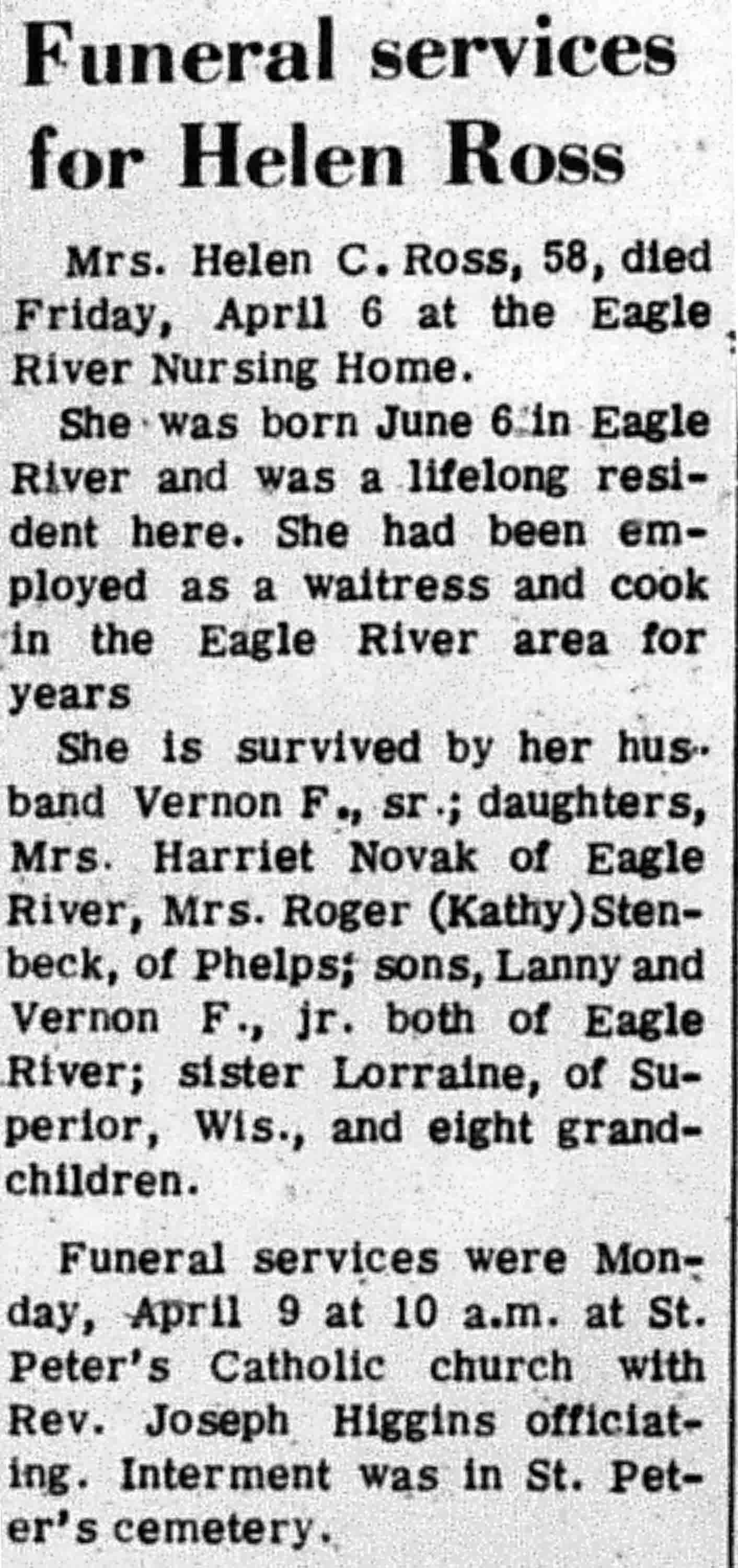 | Ross | Helen C | 06 Jun 1914 | 06 Apr 1973 | VCN | 12 Apr 1973 | 8 |