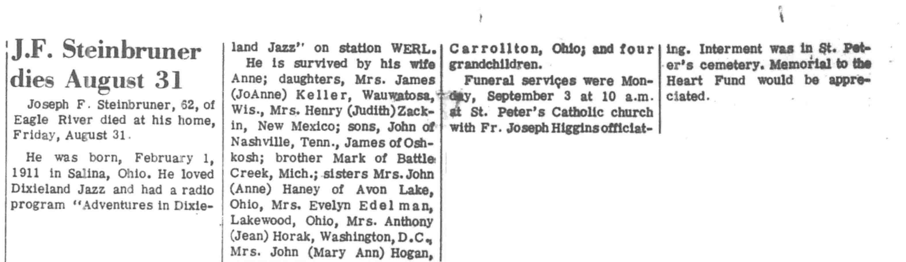 | Steinbruner | Joseph F | 01 Feb 1911 | 31 Aug 1973 | VCN | 06 Sep 1973 | 11 |