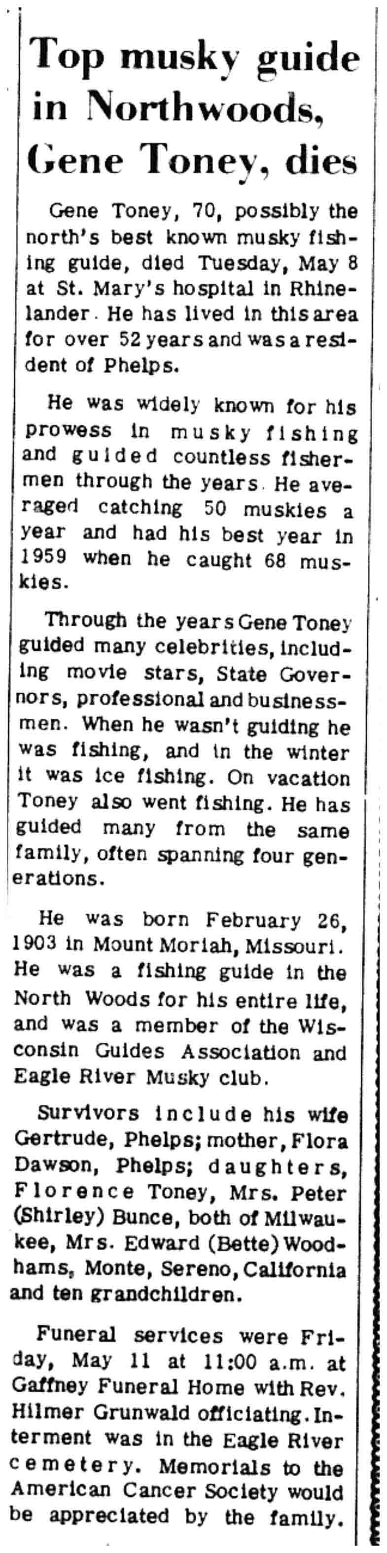 | Toney | Gene | 26 Feb 1903 | 08 May 1973 | VCN | 17 May 1973 | 2 |