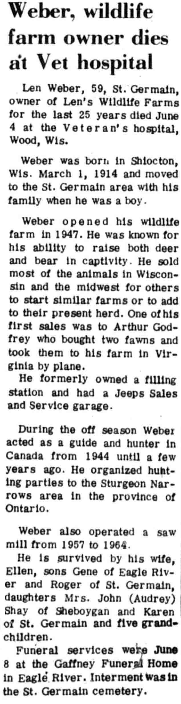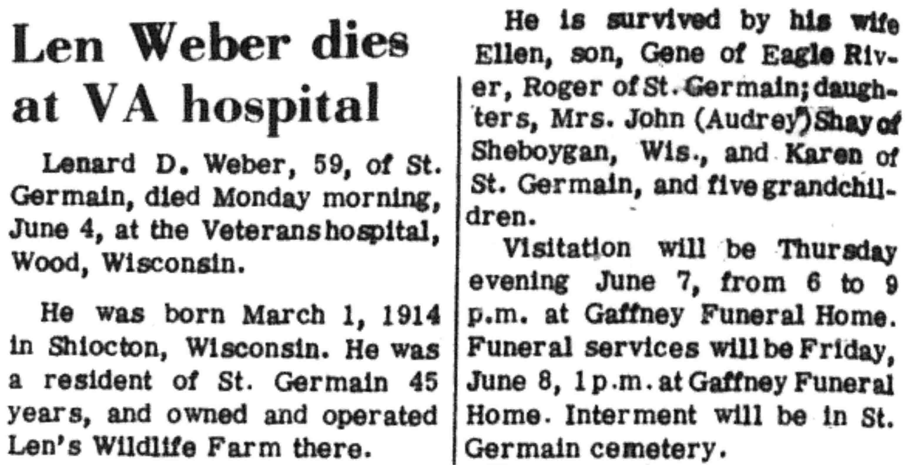 | Weber | Leonard D #1 | 01 Mar 1914 | 04 Jun 1973 | VCN | 07 Jun 1973 | 2 |