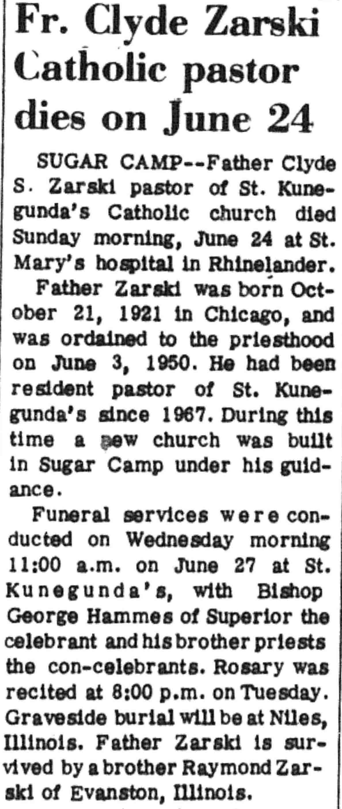 | Zarski | Clyde S, Fr | 21 Oct 1921 | 24 Jun 1973 | VCN | 28 Jun 1973 | 8 |