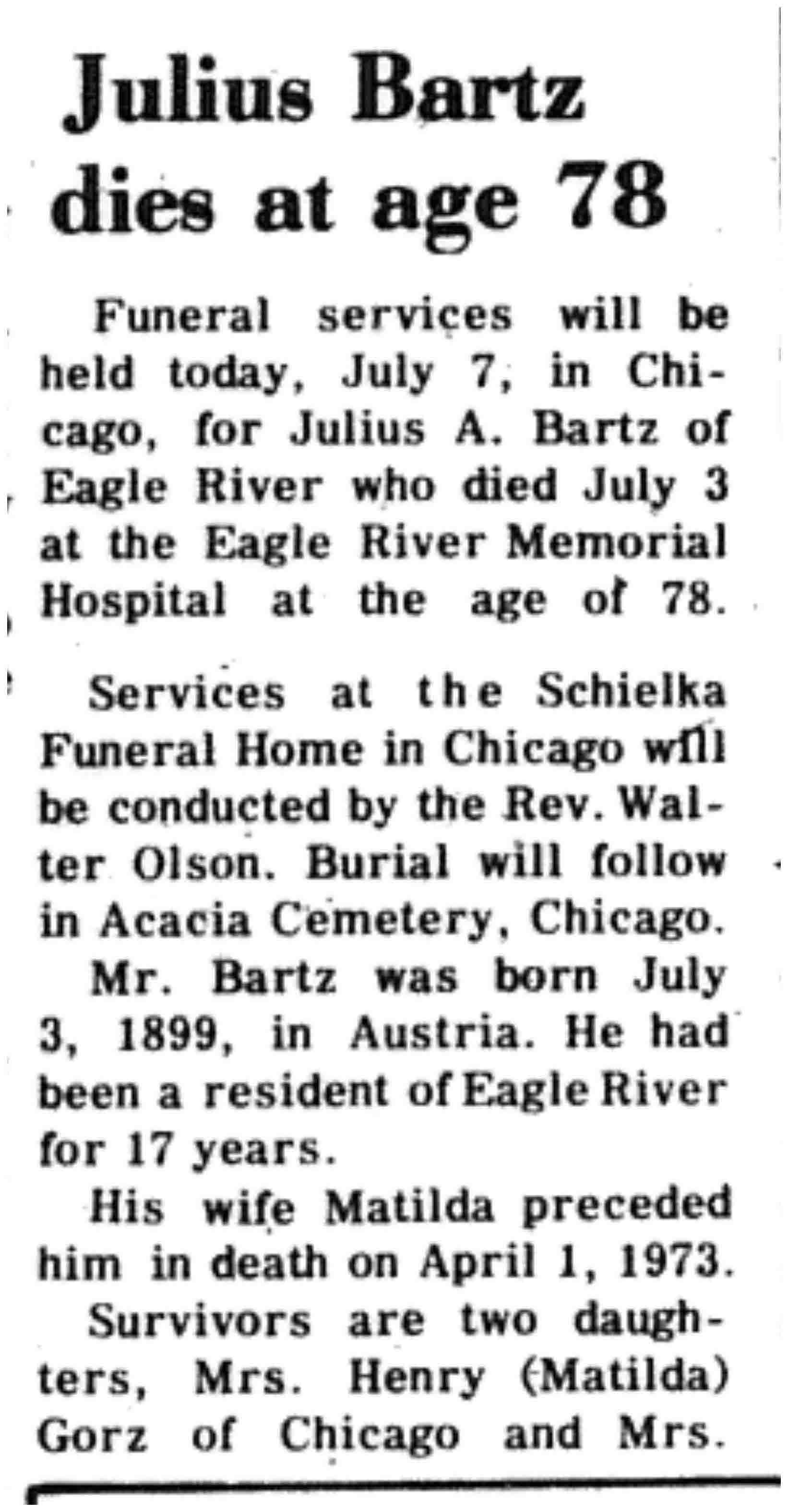 | Bartz | Julius A | 03 Jul 1899 | 03 Jul 1977 | VCN | 07 Jul 1977 | 20 |