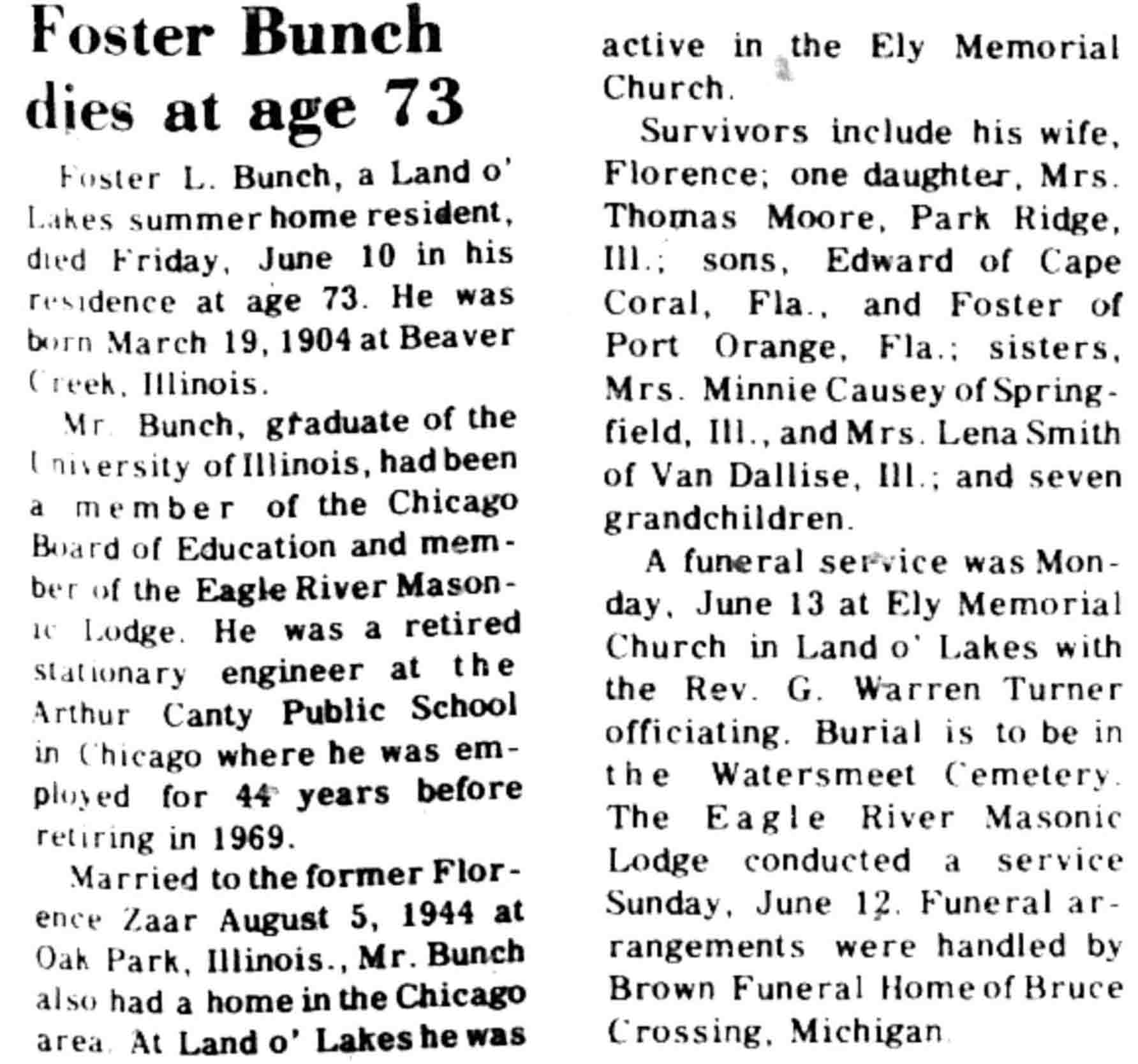 | Bunch | Foster L | 19 Mar 1904 | 10 Jun 1977 | VCN | 16 Jun 1977 | 13 |