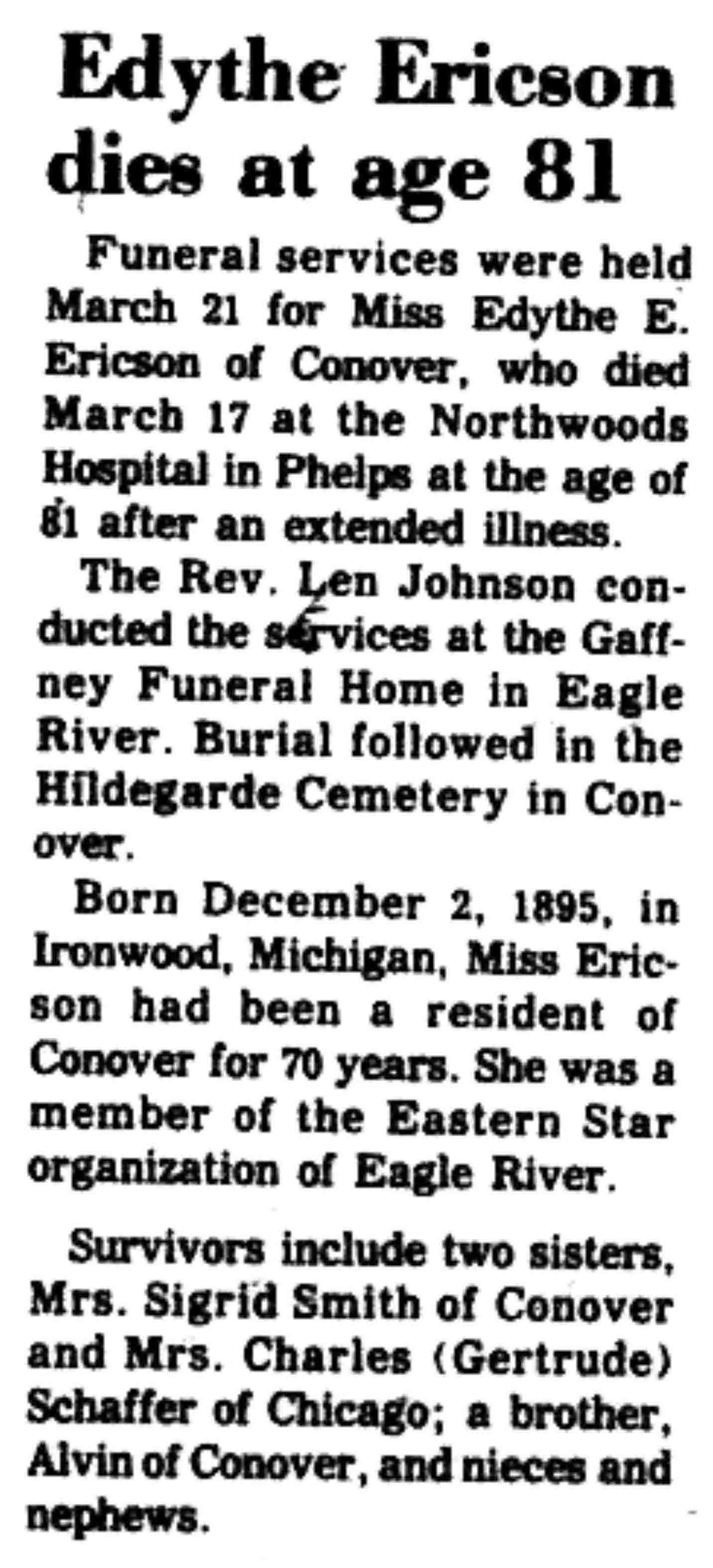| Ericson | Edythe | 02 Dec 1895 | 17 Mar 1977 | VCN | 24 Mar 1977 | 2 |