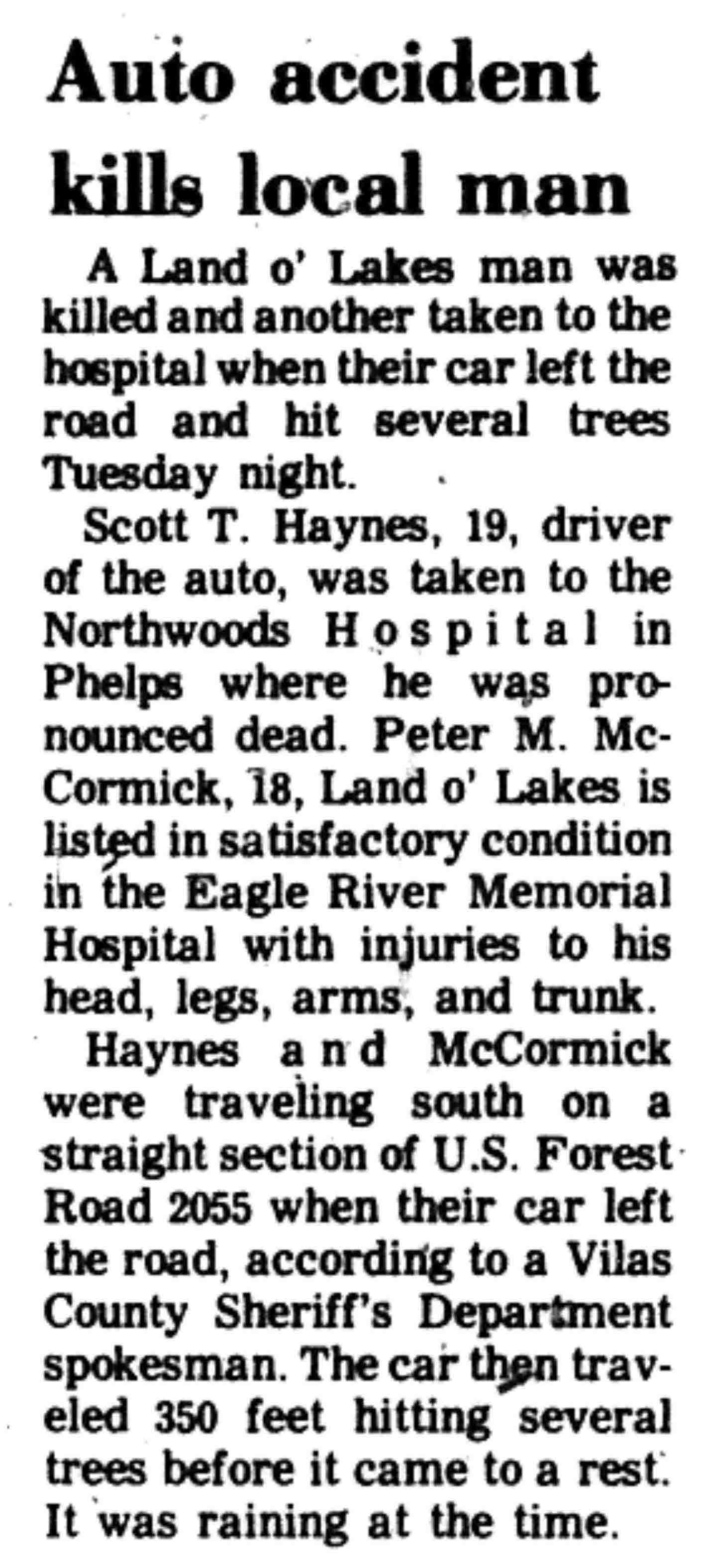 | Haynes | Scott T | c 1959 | 09 Aug 1977 | VCN | 11 Aug 1977 | 5 |