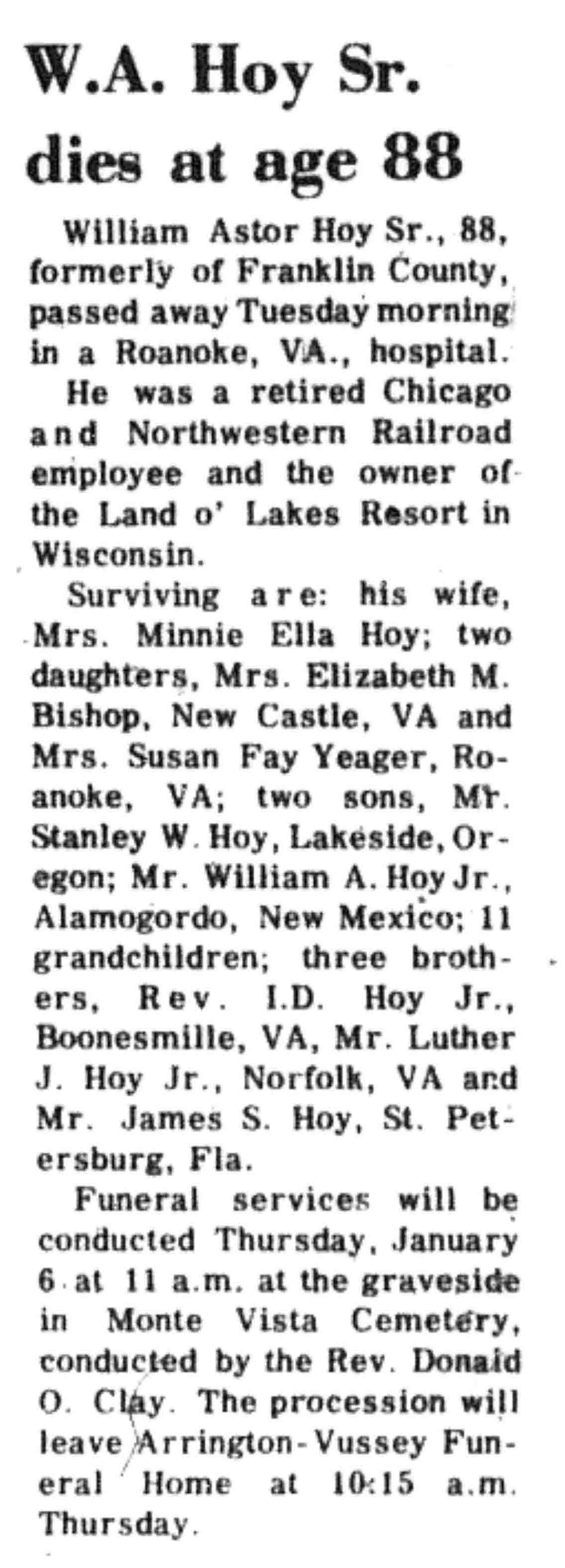| Hoy | William Astor, Sr | c 1889 | 04 Jan 1977 | VCN | 06 Jan 1977 | 3 |