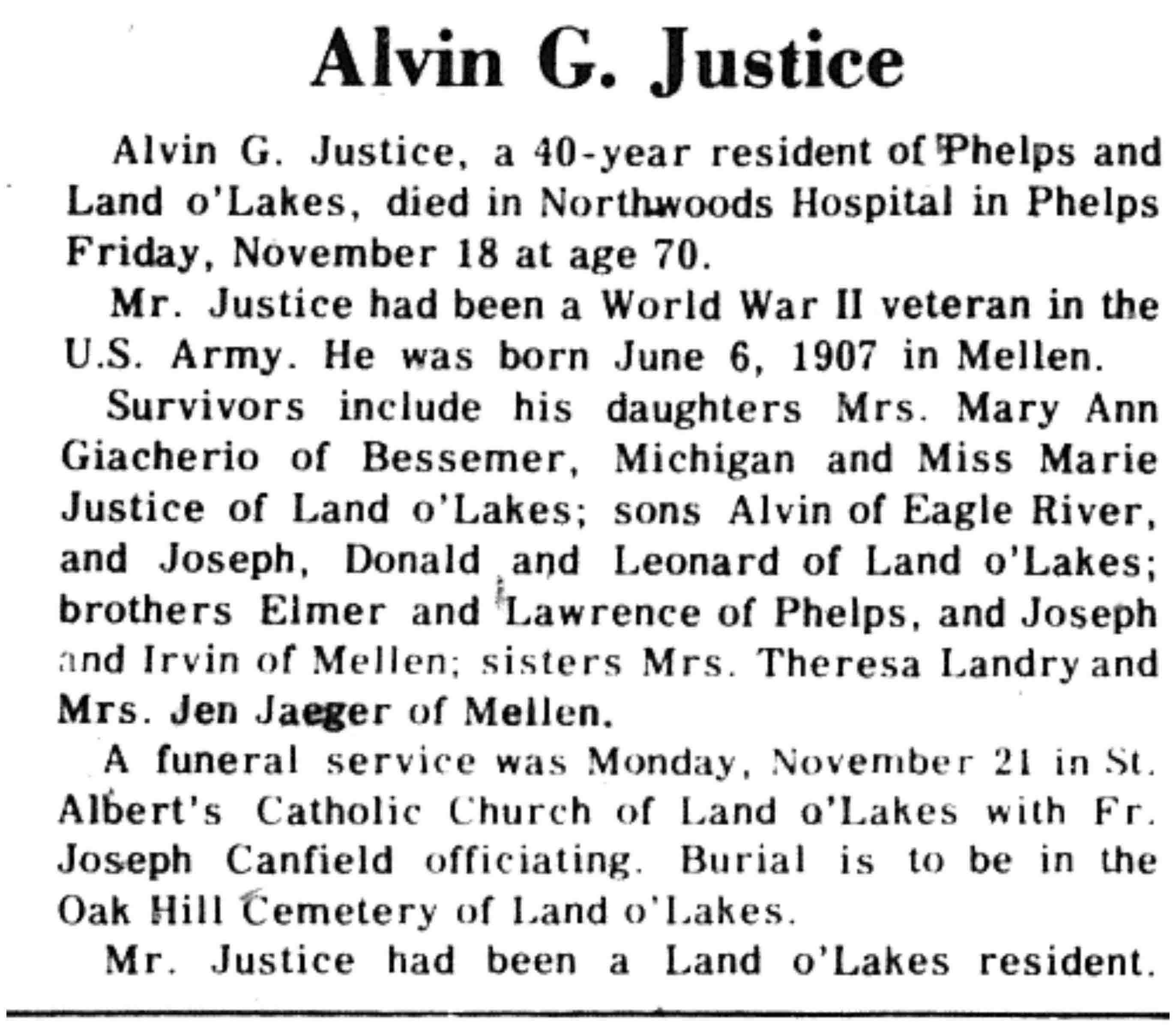 | Justice | Alvin G | 06 Jun 1907 | 18 Nov 1977 | VCN | 24 Nov 1977 | 5 |