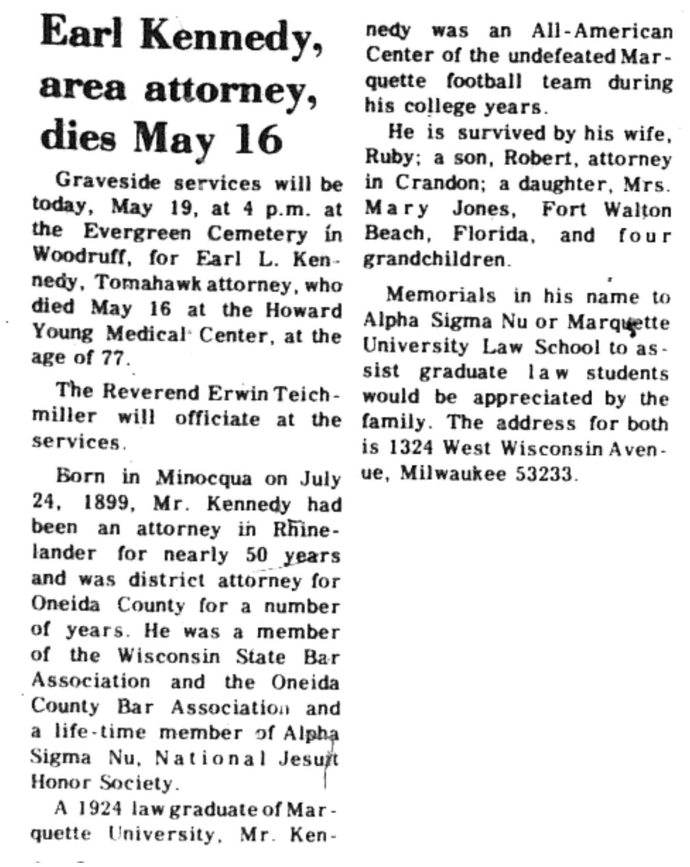 | Kennedy | Earl L | 24 Jul 1899 | 16 May 1977 | VCN | 26 May 1977 | 12 |