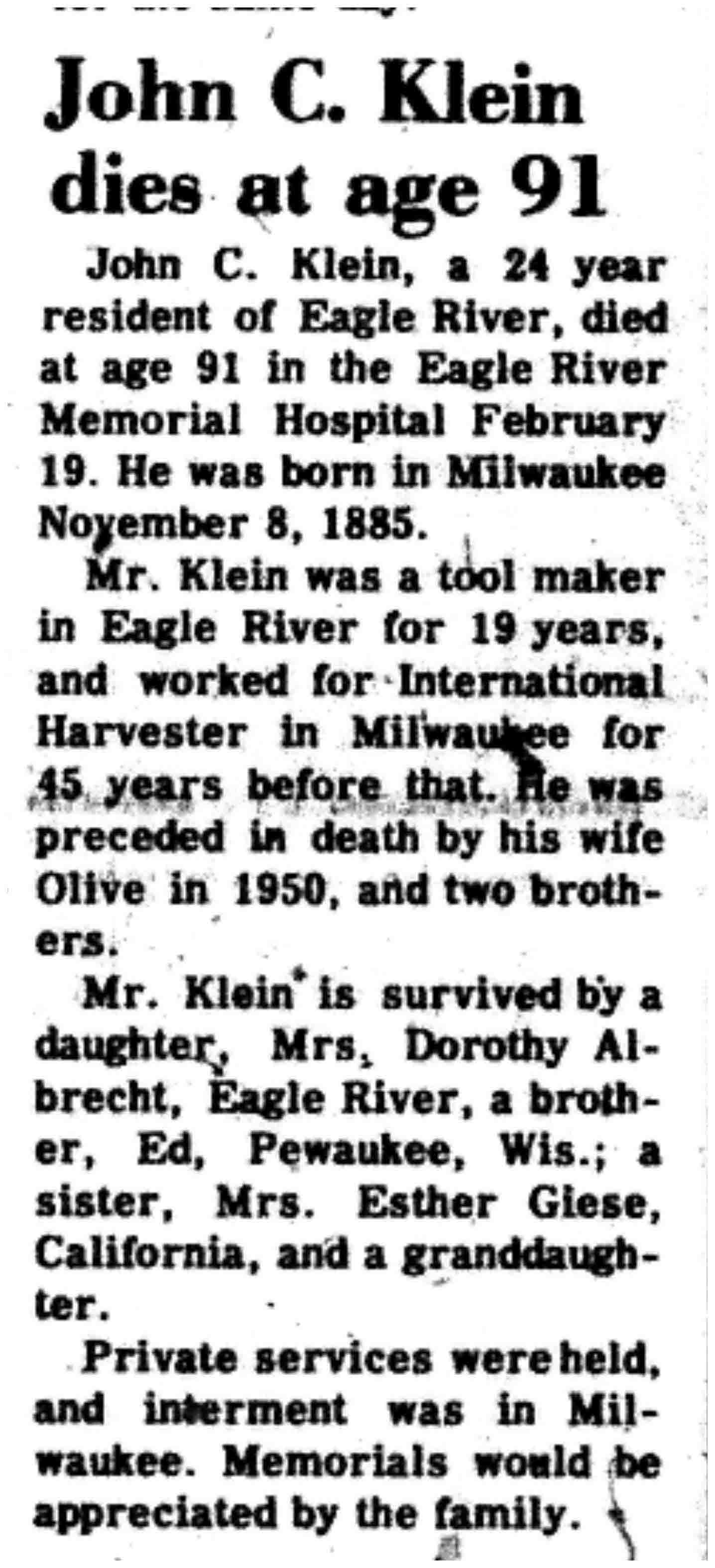 County, WI, Newspaper Obituaries