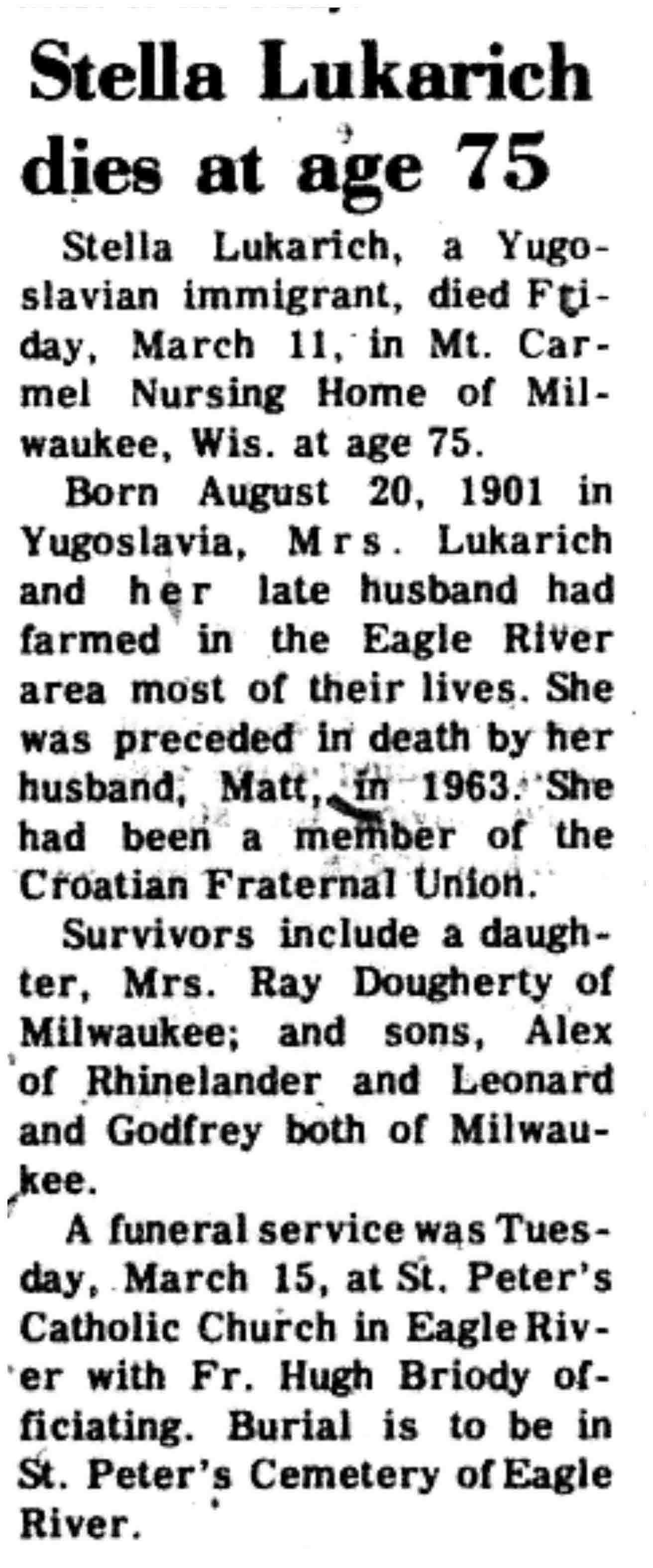 | Lukarich | Stella | 20 Aug 1901 | 11 Mar 1977 | VCN | 17 Mar 1977 | 3 |