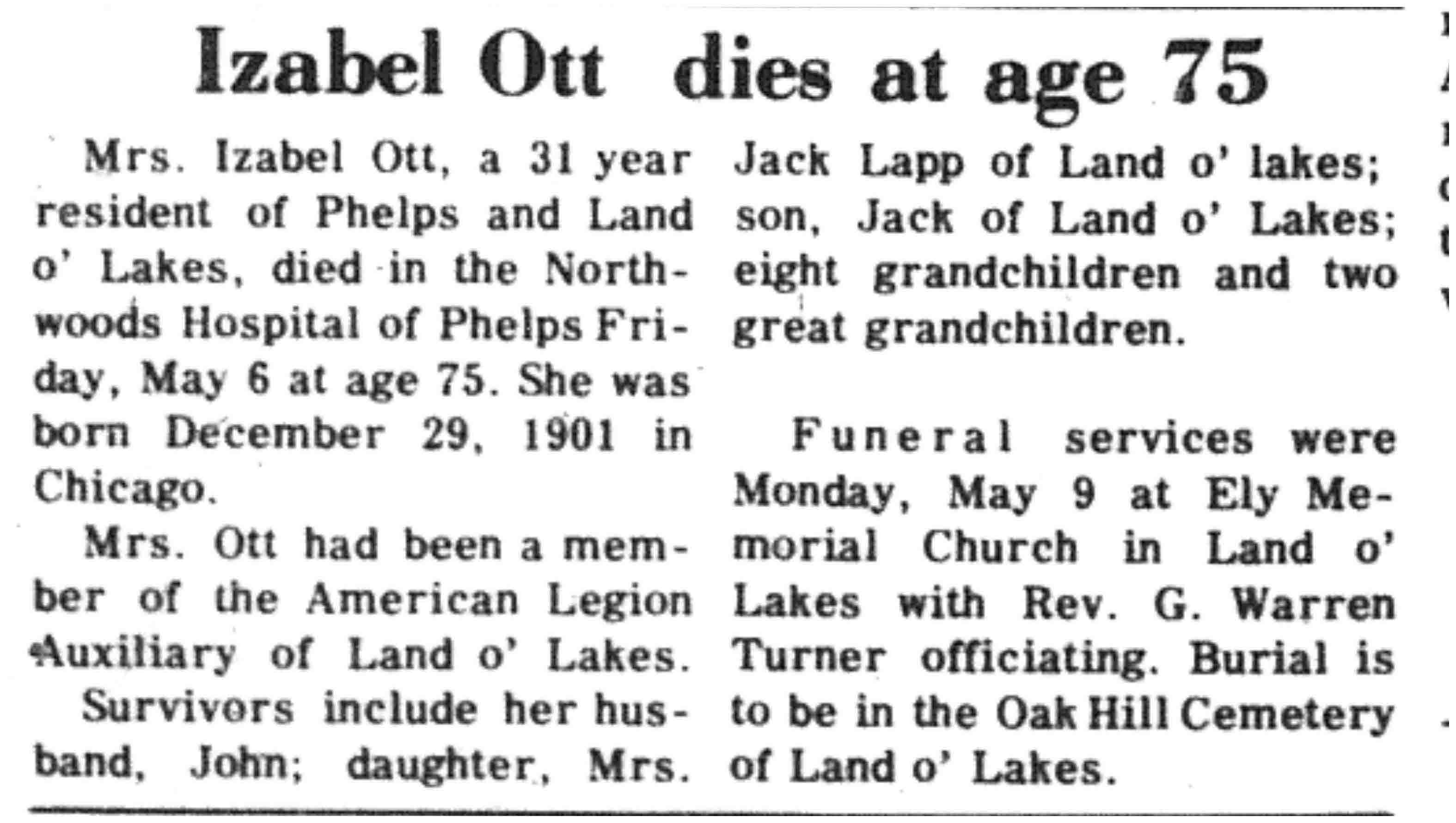 | Ott | Izabel | 29 Dec 1901 | 06 May 1977 | VCN | 12 May 1977 | 2 |