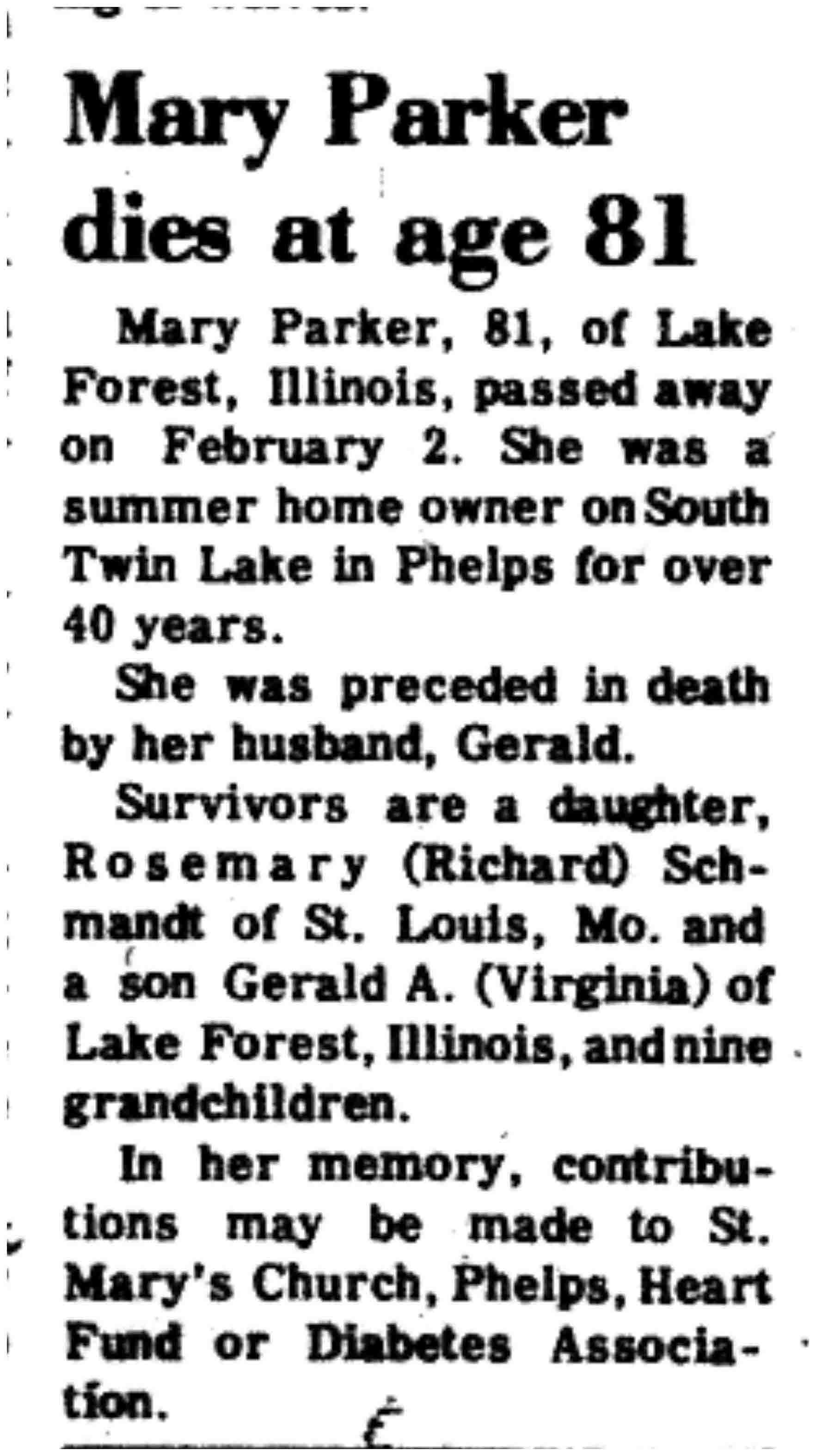| Parker | Mary | c 1896 | 02 Feb 1977 | VCN | 03 Mar 1977 | 2 |