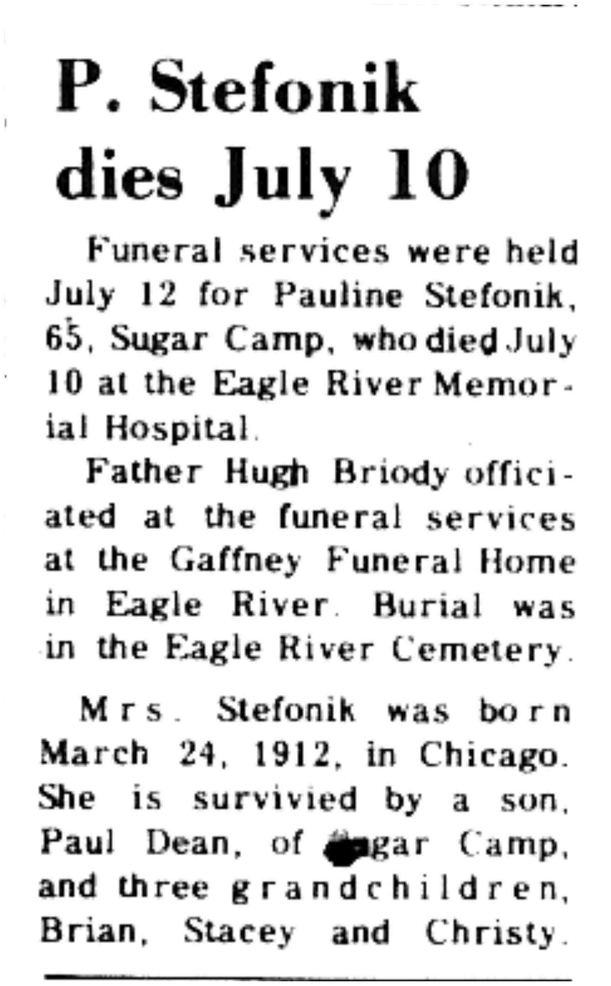 | Stefonik | Pauline | 24 Mar 1912 | 10 Jul 1977 | VCN | 14 Jul 1977 | 4 |