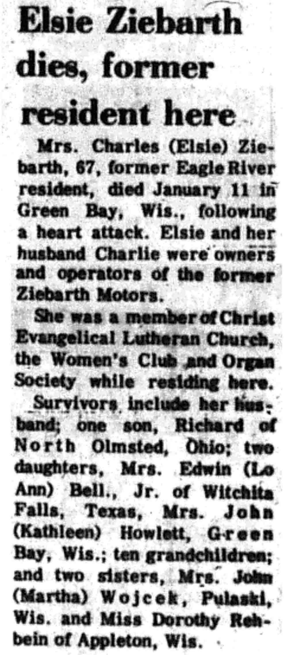 | Ziebarth | Elsie | c 1910 | 11 Jan 1977 | VCN | 20 Jan 1977 | 13 |