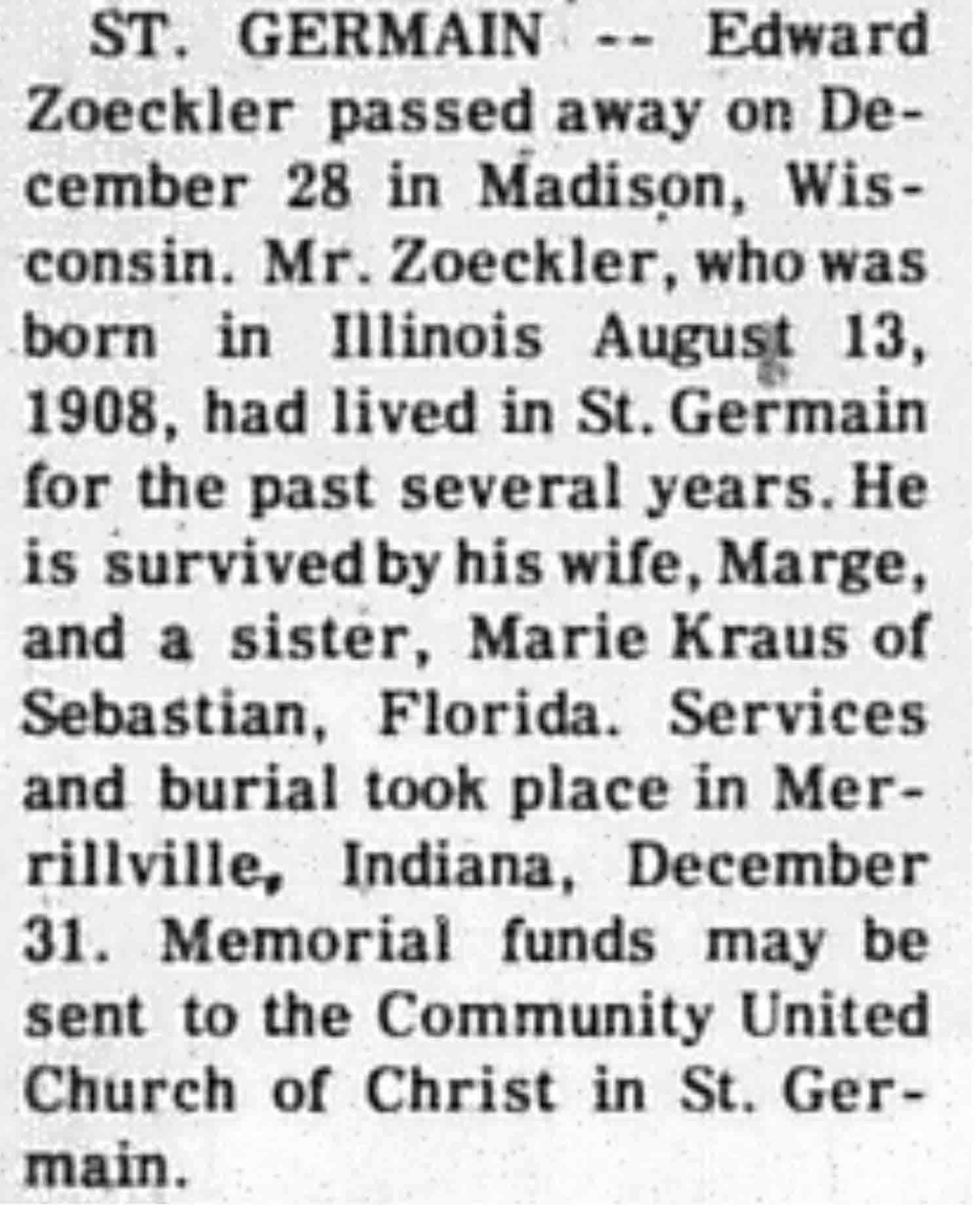 | Zoeckler | Edward | 13 Aug 1908 | 28 Dec 1977 | VCN | 05 Jan 1978 | 2 |