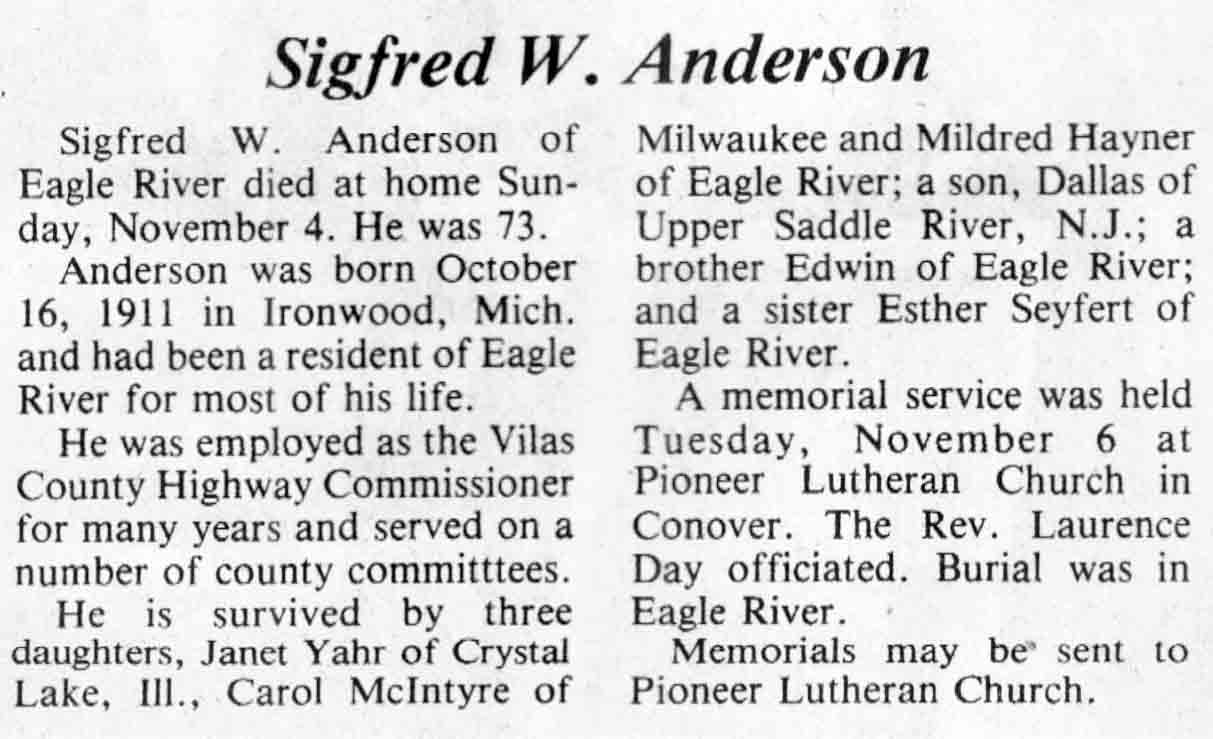 | Anderson | Sigfred W | 16 Oct 1911 | 04 Nov 1984 | TLN | 14 Nov 1984 | 4 |
