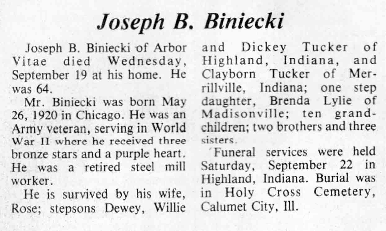 | Biniecki | Joseph B | 26 May 1920 | 19 Sep 1984 | TLN | 26 Sep 1984 | 4 |