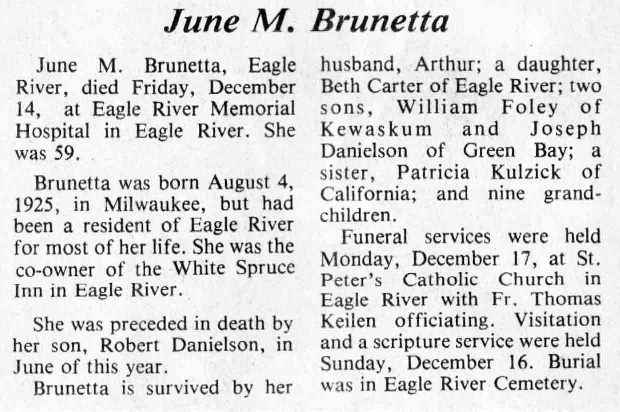 | Brunetta | June M | 04 Aug 1925 | 14 Dec 1984 | TLN | 19 Dec 1984 | 4 |