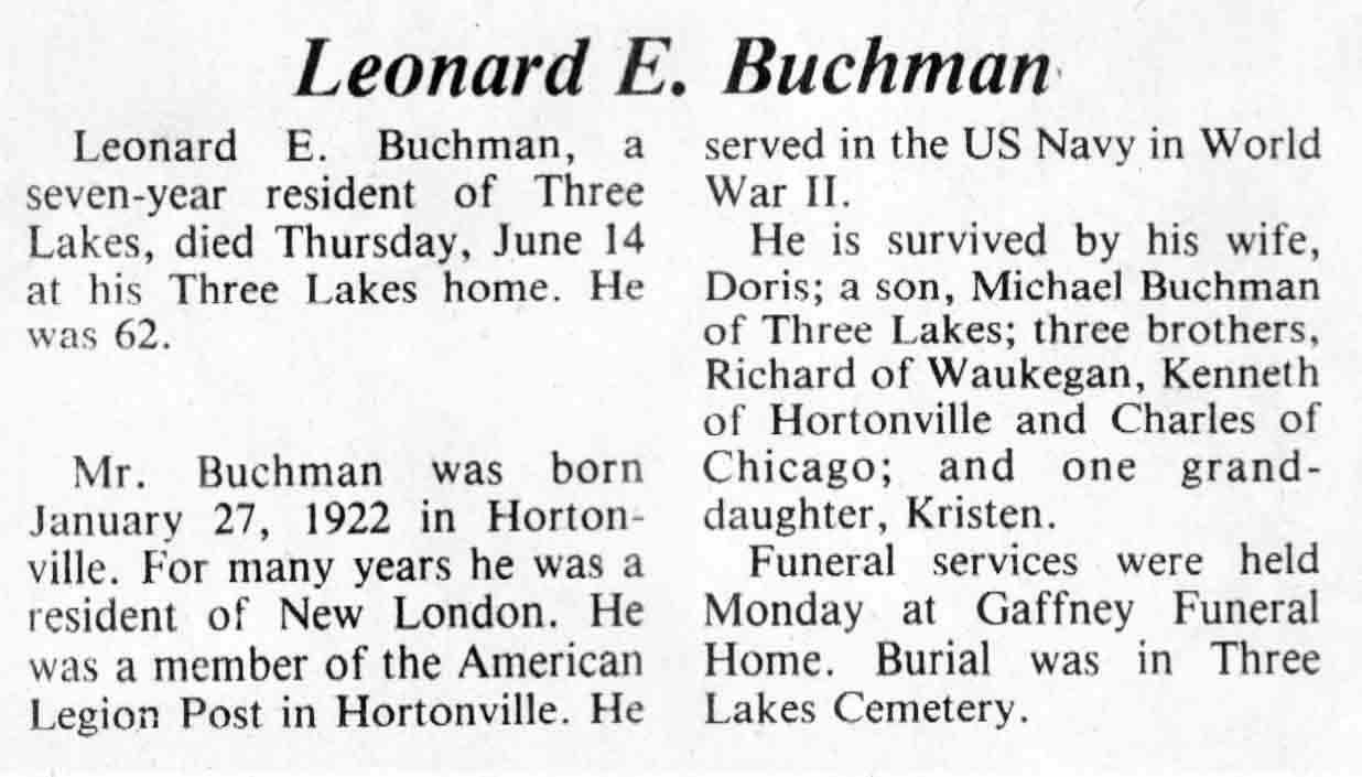 | Buchman | Leonard E | 27 Jan 1922 | 14 Jun 1984 | TLN | 20 Jun 1984 | 4 |