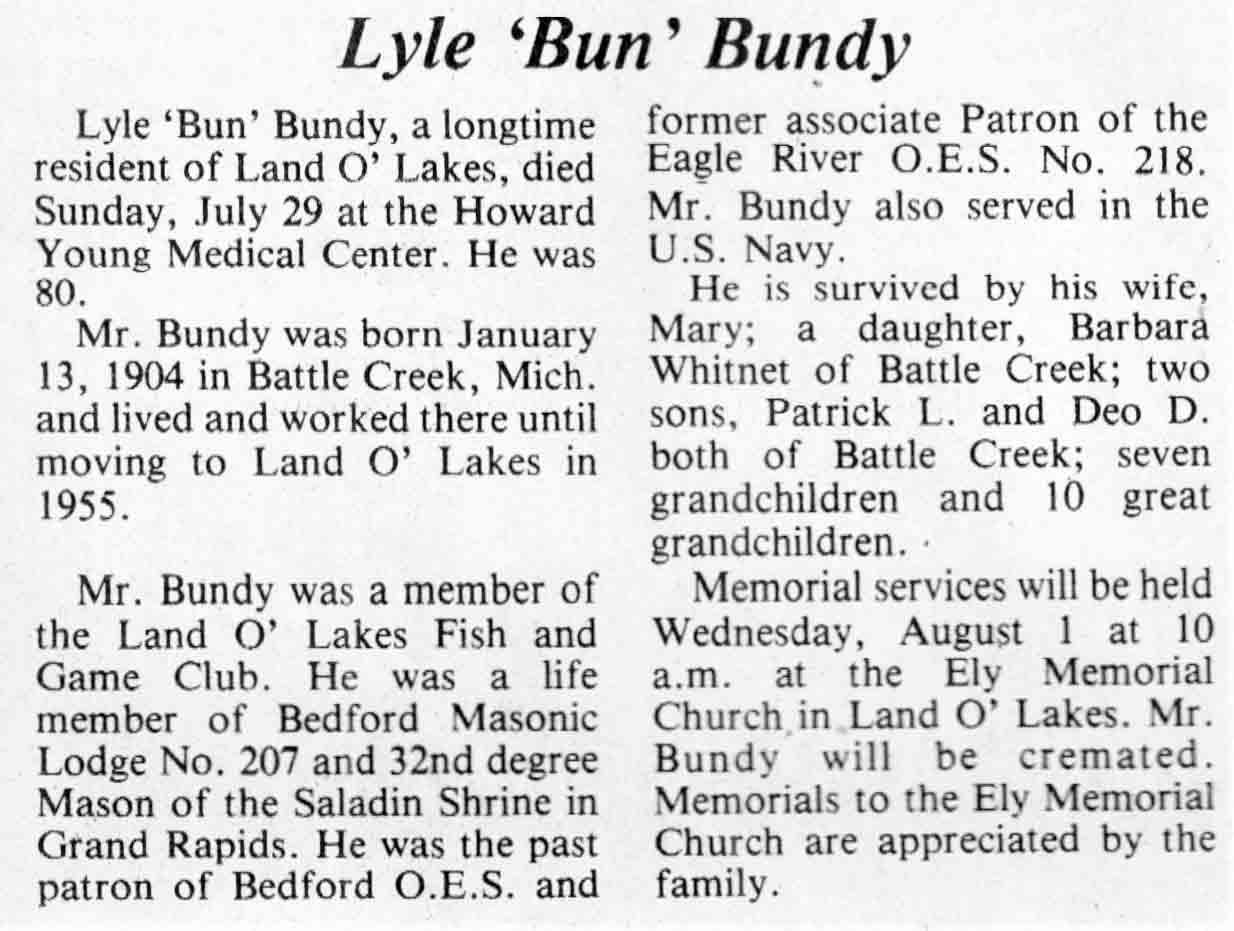 | Bundy | Lyle 'Bun' | 13 Jan 1904 | 29 Jul 1984 | TLN | 01 Aug 1984 | 4 |