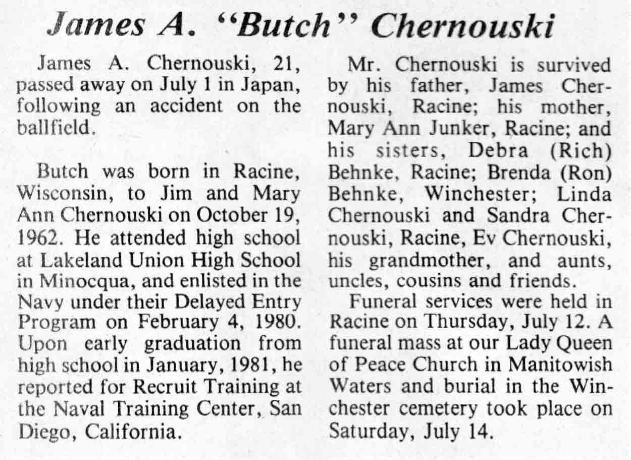 | Chernouski | James A 'Butch' | 19 Oct 1962 | 01 Jul 1984 | TLN | 25 Jul 1984 | 4 |