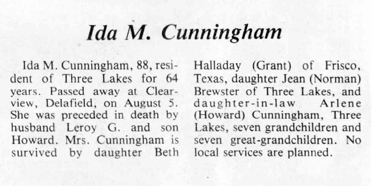 | Cunningham | Ida M | c 1896 | 05 Aug 1984 | TLN | 15 Aug 1984 | 4 |