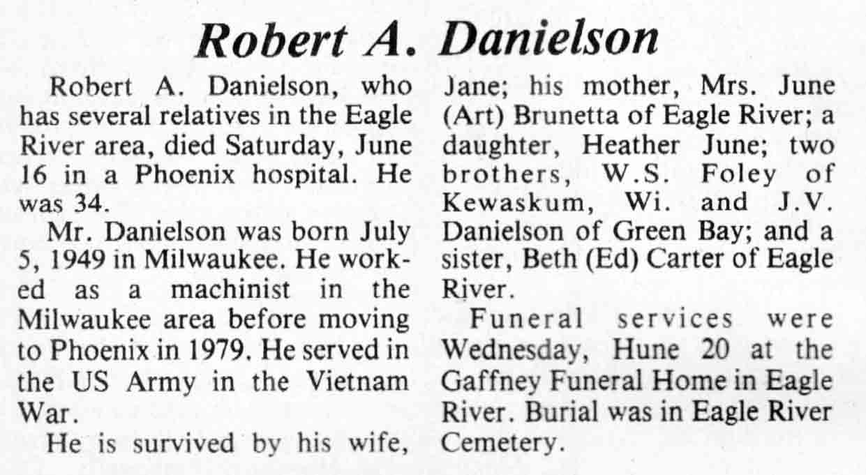 | Danielson | Robert A | 05 Jul 1949 | 16 Jun 1984 | TLN | 27 Jun 1984 | 4 |