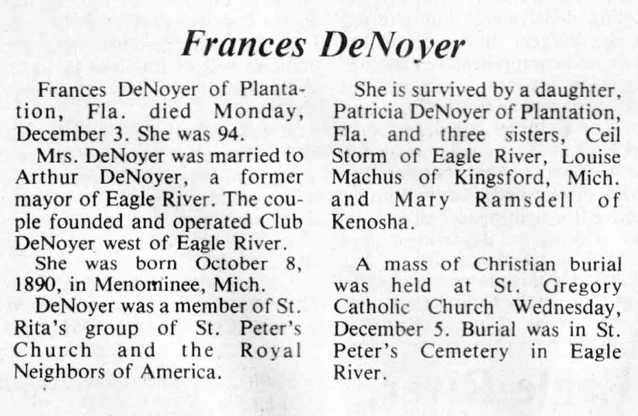 | DeNoyer | Frances | 8 Oct 1890 | 03 Dec 1984 | TLN | 12 Dec 1984 | 4 |