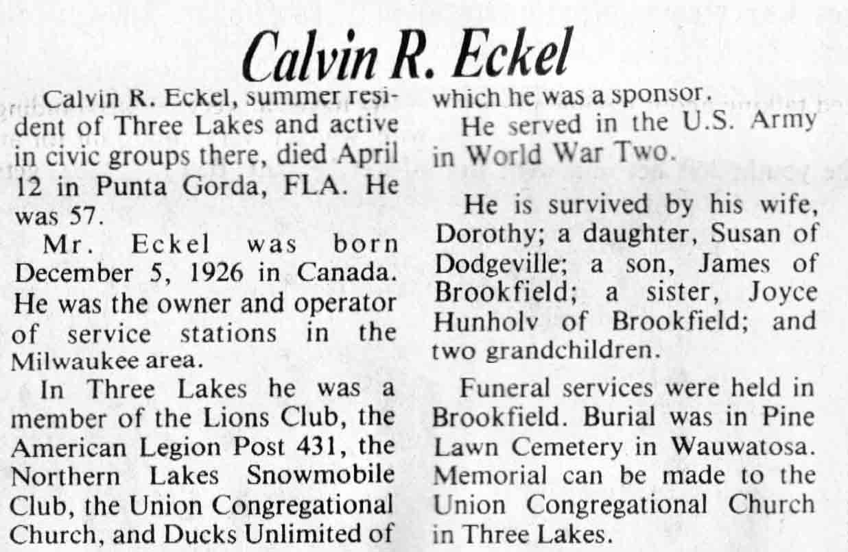 | Eckel | Calvin R | 05 Dec 1926 | 12 Apr 1984 | TLN | 18 Apr 1984 | 4 |