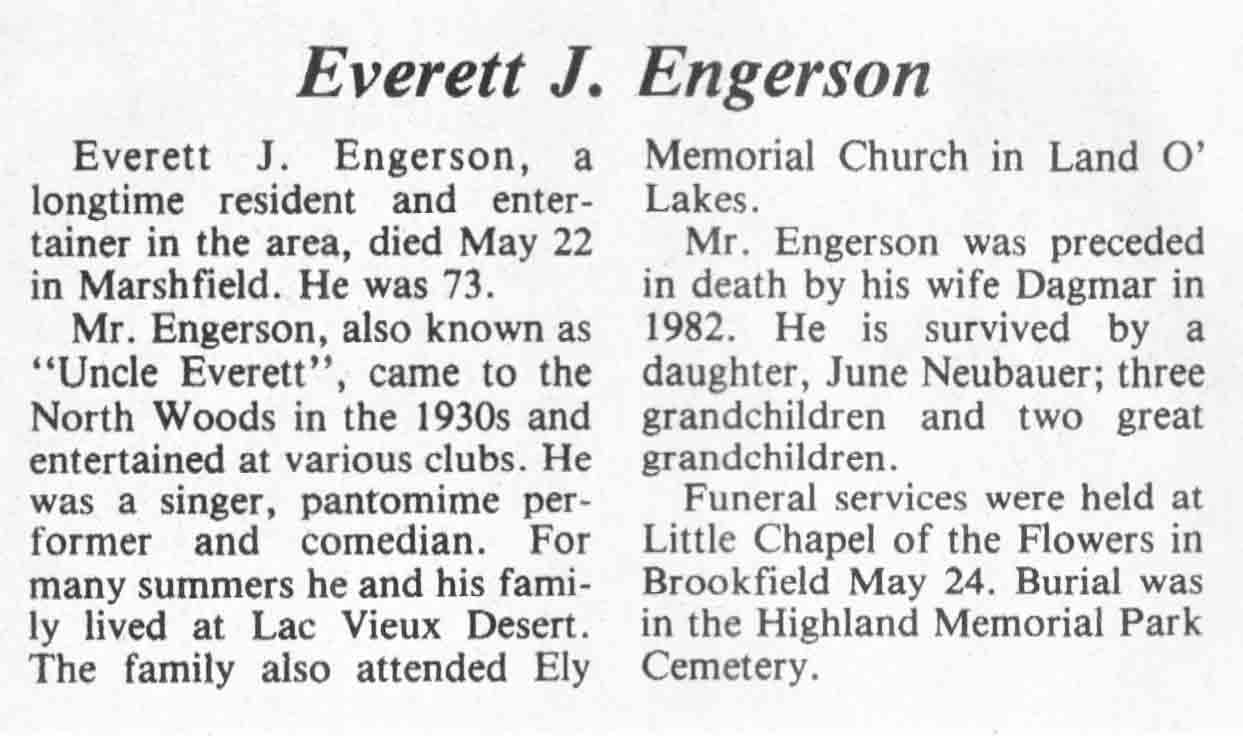 | Engerson | Everett J | c 1911 | 22 May 1984 | TLN | 06 Jun 1984 | 4 |