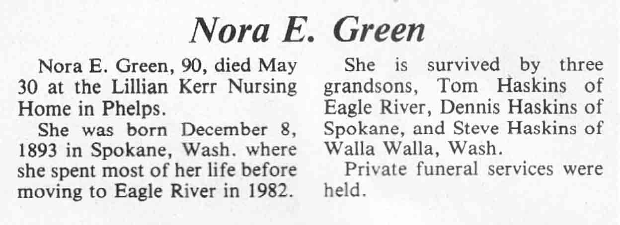 | Green | Nora E | 8 Dec 1893 | 30 May 1984 | TLN | 06 Jun 1984 | 4 |