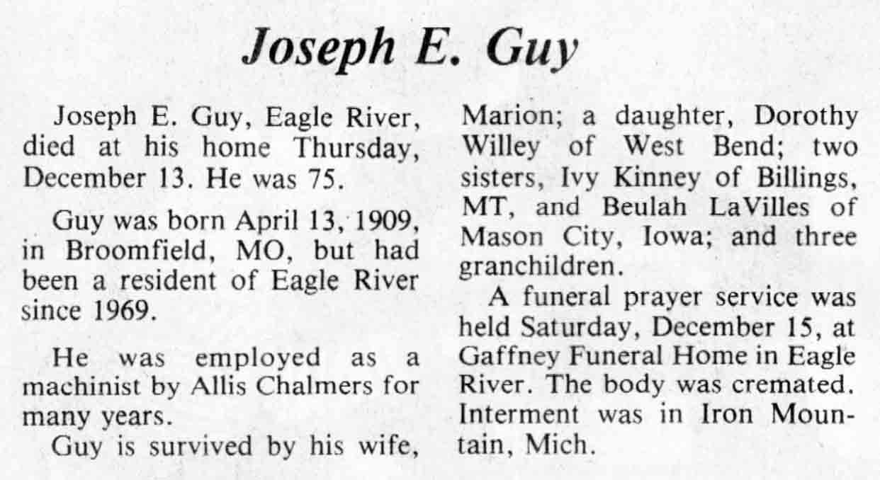 | Guy | Joseph E | 13 Apr 1909 | 13 Dec 1984 | TLN | 19 Dec 1984 | 4 |