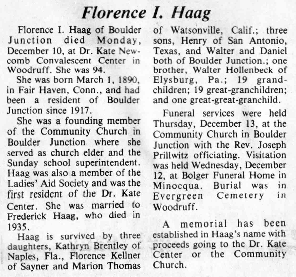 | Haag | Florence I (Hollenbeck) | 1 Mar 1890 | 10 Dec 1984 | TLN | 26 Dec 1984 | 4 |