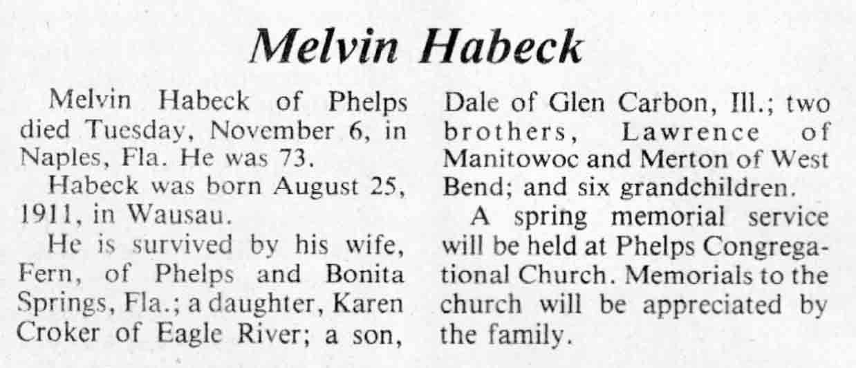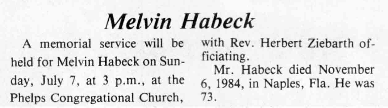 | Habeck | Melvin #1 | 25 Aug 1911 | 06 Nov 1984 | TLN | 21 Nov 1984 | 4 |