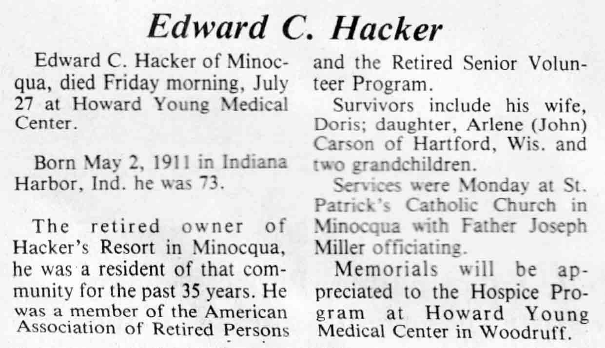 | Hacker | Edward C | 02 May 1911 | 27 Jul 1984 | TLN | 01 Aug 1984 | 4 |