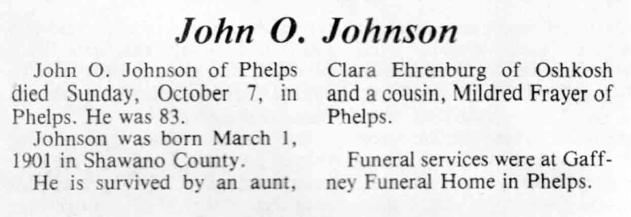 | Johnson | John O | 01 Mar 1901 | 07 Oct 1984 | TLN | 17 Oct 1984 | 4 |