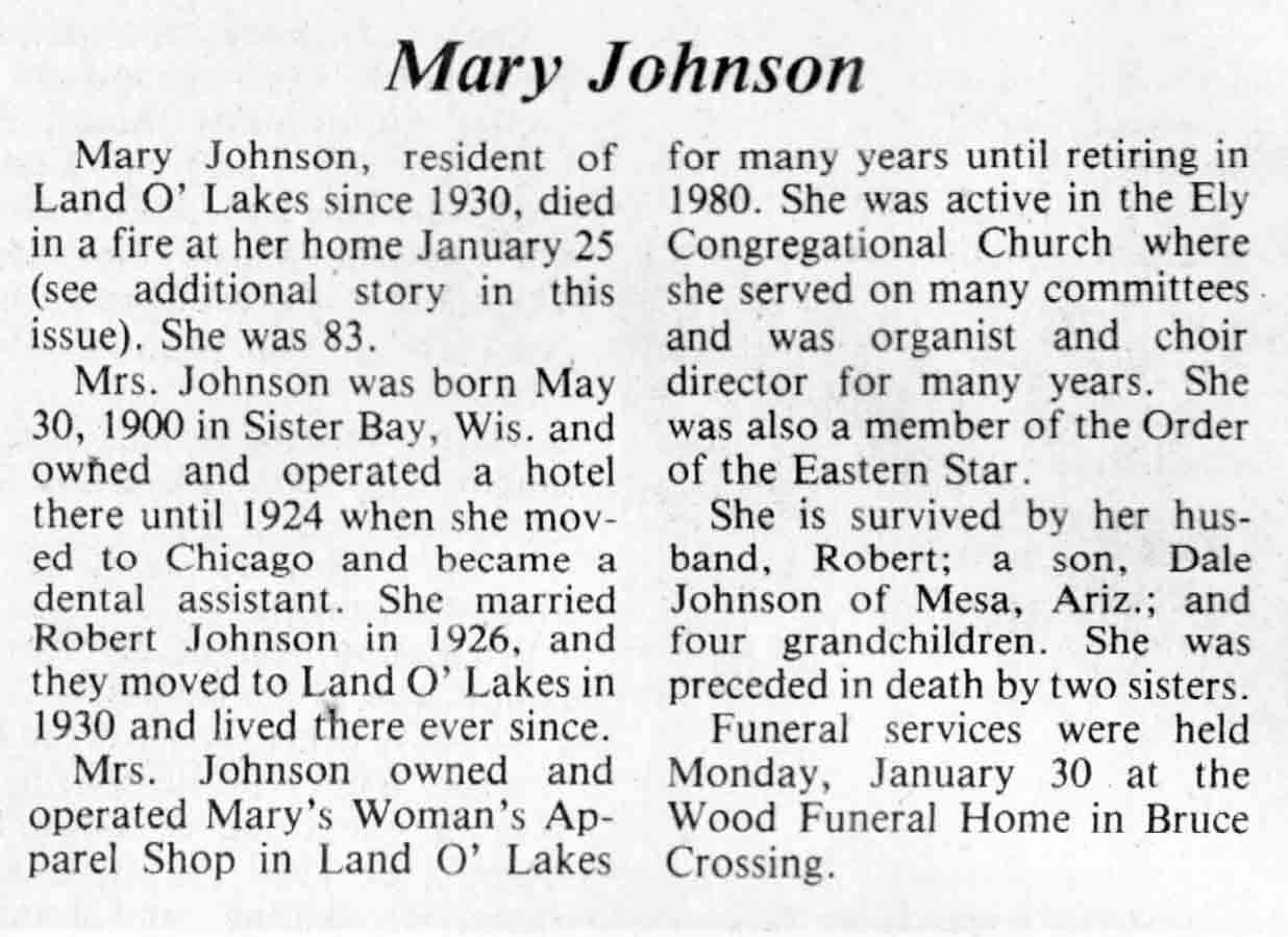 | Johnson | Mary | 30 May 1900 | 25 Jan 1984 | TLN | 01 Feb 1984 | 4 |