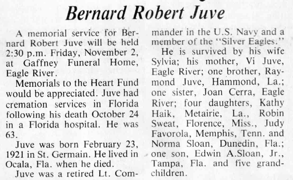 | Schmidt | Bernard J | 14 Jun 1911 | 23 Jun 1984 | TLN | 27 Jun 1984 | 4 |